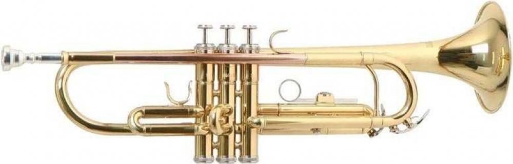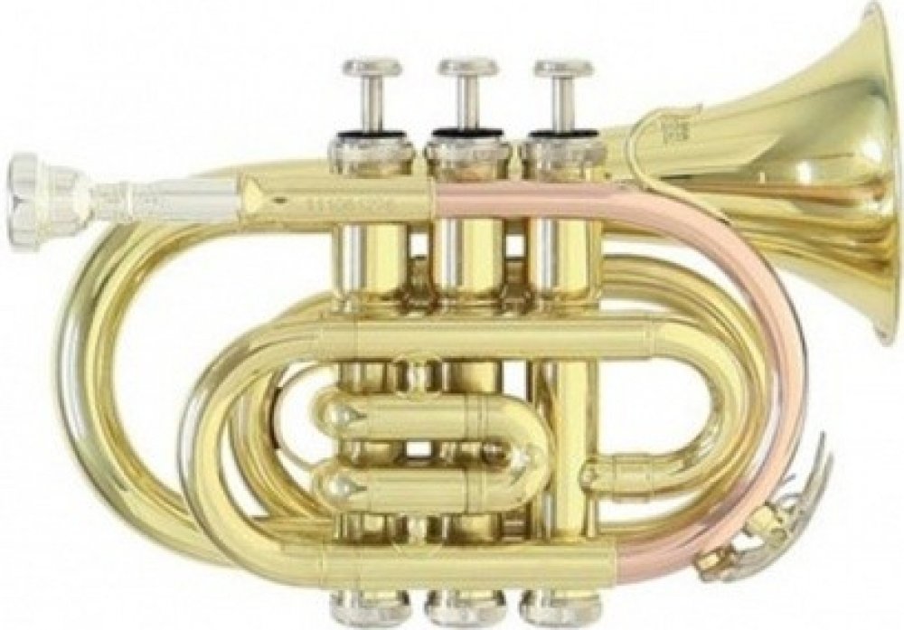 Kapesní Bb trumpeta - zlatolakovaný model pro začátečníky. Tělo nástroje i ozvučnice jsou vyrobeny z mosazi, pístové ventily jsou vyrobeny z nerezové oceli. Obsahuje 2 vodní klapky, pevný prstový kroužek na 3. tahu. K nástroji patří pouzdro, nátrubek a drobné příslušenství.