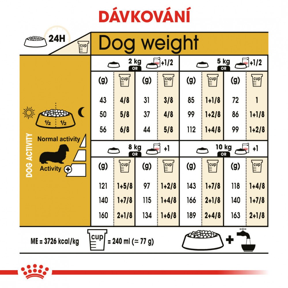 Pomáhá udržet svalovou hmotu a ideální hmotnost jezevčíka.