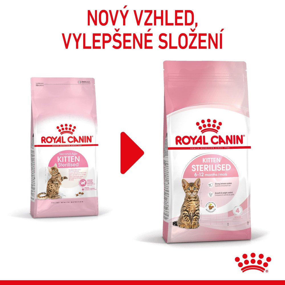 Od 6 měsíců věku se koťata často kastrují. Během 48 hodin po operaci se metabolismus Vašeho kotěte zpomalí - ale jeho hlad pravděpodobně zůstane nekontrolovaný! Vzhledem k tomu, že aktivita kastrovaného kotěte stále roste, je třeba upravit jeho stravu tak, aby podporovala optimální růst a nepodporovala zbytečné přibývání na váze. Krmivo Royal Canin Sterilised Kitten bylo speciálně vyvinuto tak, aby splňovalo nutriční potřeby sterilizovaných koťat během růstu. Toto na míru šité krmivo obsahuje snížený obsah tuku pro kontrolu hmotnosti, ale bez obětování optimálního množství bílkovin, vápníku a fosforu pro ideální vývoj. Obsahuje také živiny, jako jsou vitamíny C a E, které podporují vývoj optimálního imunitního systému kotěte. Pro podporu vývoje mozku a normálního vidění je krmivo obohaceno o omega 3 mastné kyseliny (DHA). Díky kombinaci prospěšných prebiotik (MOS) a vysoce stravitelných proteinů přispívá Royal Canin Sterilised Kitten také k přirozené rovnováze střevní mikroflóry, což může být prospěšné pro normální trávení. Royal Canin Kitten Sterilised: Vysoce kvalitní granule pro sterilizovaná koťata ve věku 6 až 12 měsíců Kontrola hmotnosti: díky upravenému obsahu tuku Normální imunitní systém: s živinami, jako jsou vitamíny C a E Vývoj mozku: je podporován omega 3 mastnými kyselinami Podpora mikrobiomu: prebiotika a vysoce stravitelné bílkoviny pro přirozenou rovnováhu střevní flóry Granule krmiva ROYAL CANIN® Sterilised Kitten byly vyvinuty speciálně pro malé čelisti Vašeho kotěte. Mechanický efekt odírání během žvýkání podporuje zdraví zubů. Vhodné mokré krmivo ke granulím Royal Canin Kitten Sterilised najdete zde: Royal Canin Kitten v omáčce Royal Canin Kitten v želé Royal Canin Kitten Mousse