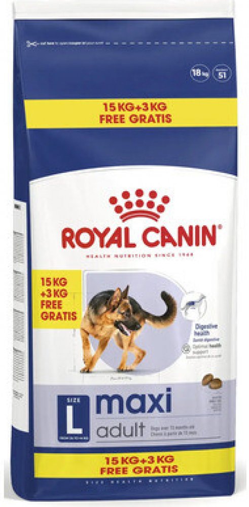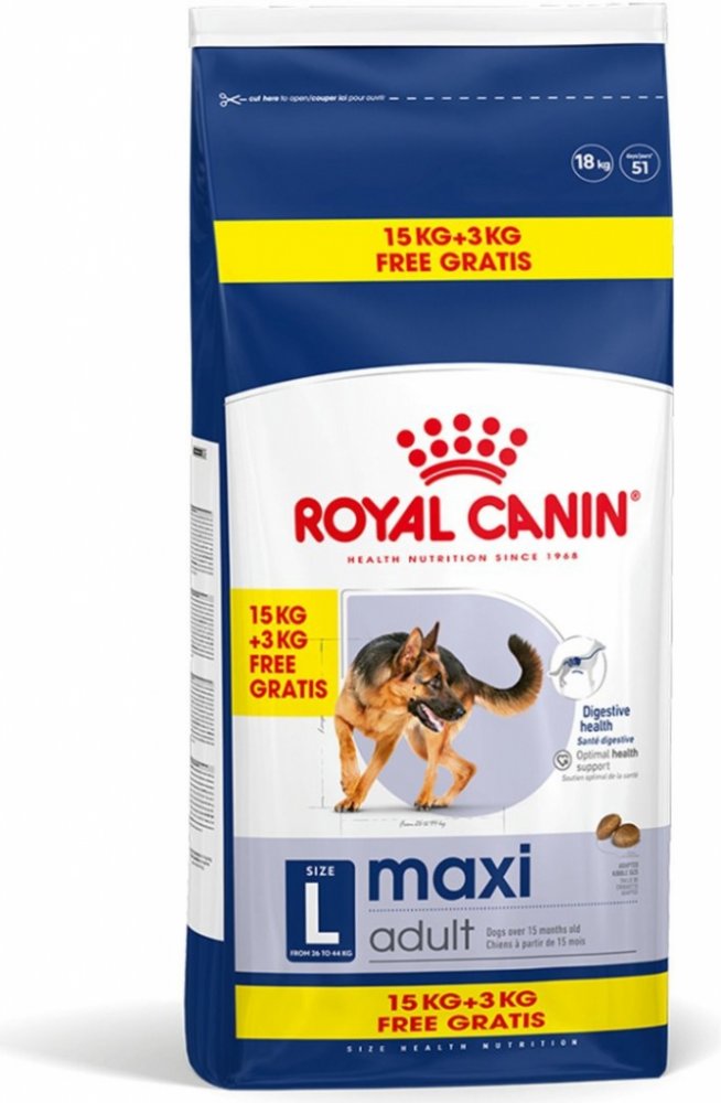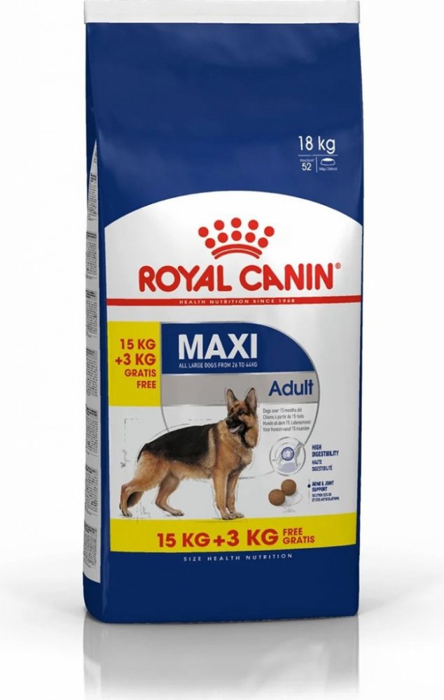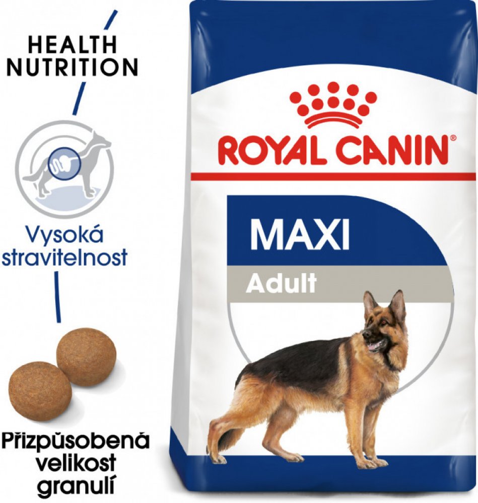 Dospělí psi velkého vzrůstu mají relativně malý trávicí systém a tím omezenou trávicí kapacitu. Stěny střev jsou u velkých psů propustnější než u malých, což má za následek pronikání vody do střeva a také vodnatější stolici. Bakteriální kvasné procesy ve střevech mohou způsobit plynatost. Velcí psi nemají pouze citlivé trávení, ale také klouby. K jejich poškození může dojít dokonce již v mládí, pokud je pes vystaven nadměrné tělesné zátěži. Právě proto by měli psi velkého vzrůstu dostávat speciální krmivo: Royal Canin Maxi Adult 26 pro velké psy (26 - 45 kg) od 15-ti resp. 18-ti měsíců. Obsahuje Optima Digestive: EPA a DHA nezpůsobují trávicí potíže, dužnina z cukrové řepy pomáhá zlepšit konsistenci stolice Zdravé srdce: taurin posiluje srdeční svalstvo a srdeční funkci Zdravé klouby: chondroitin sulfát a glukosamin spolu s EPA & DHA pozitivně ovlivňují zdraví chrupavek a kloubů Dobrá snášenlivost: pečlivě vybrané živiny, moderní technologie výroby a přírodní aroma jsou velmi dobře snášeny i vybíravými psy Granule: