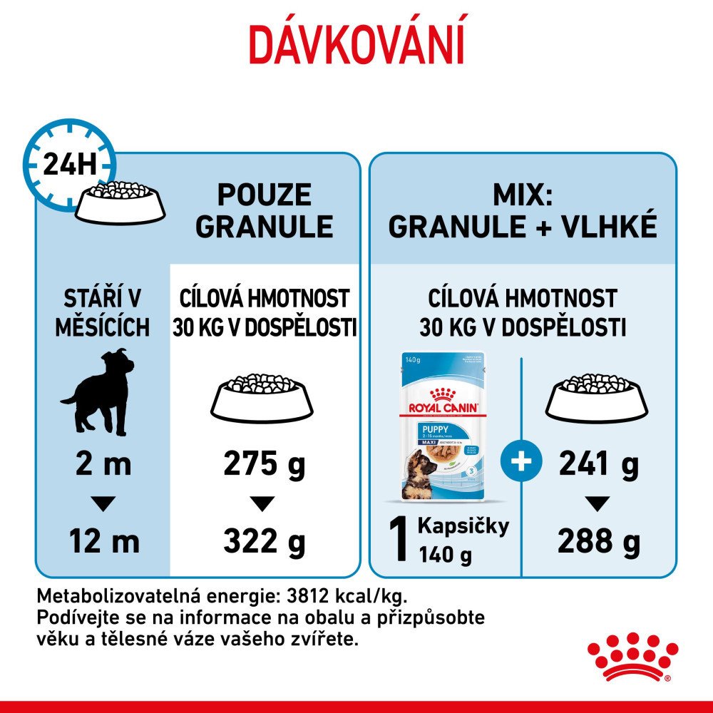 Granule jsou určeny pro štěňata a psí juniory velkých plemen ve věku od 2 do 15 měsíců, kteří v dospělosti váží 26 až 44 kg.