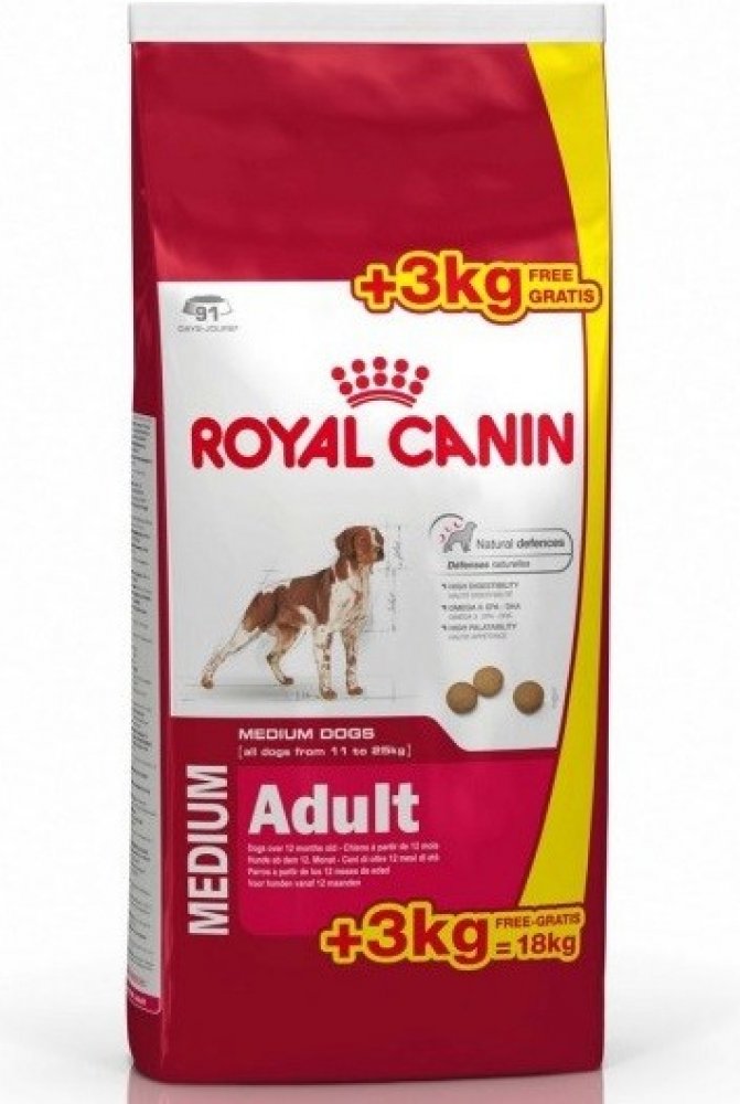 Když dospěje pes středního plemene, udrží ho zdravého a fit pravidelný pohyb a krmivo posilující jeho obranyschopnost. Kompletní krmivo Medium Adult vám zaručí zachování ideální váhy vašeho pejska,díky kvalitním bílkovinám a vysokému obsahu vlákniny, která má výbornou vstřebatelnost. Obsahuje též vitamíny E a C a přírodní antioxidanty, které posilují přirozenou obranyschopnost organismu.