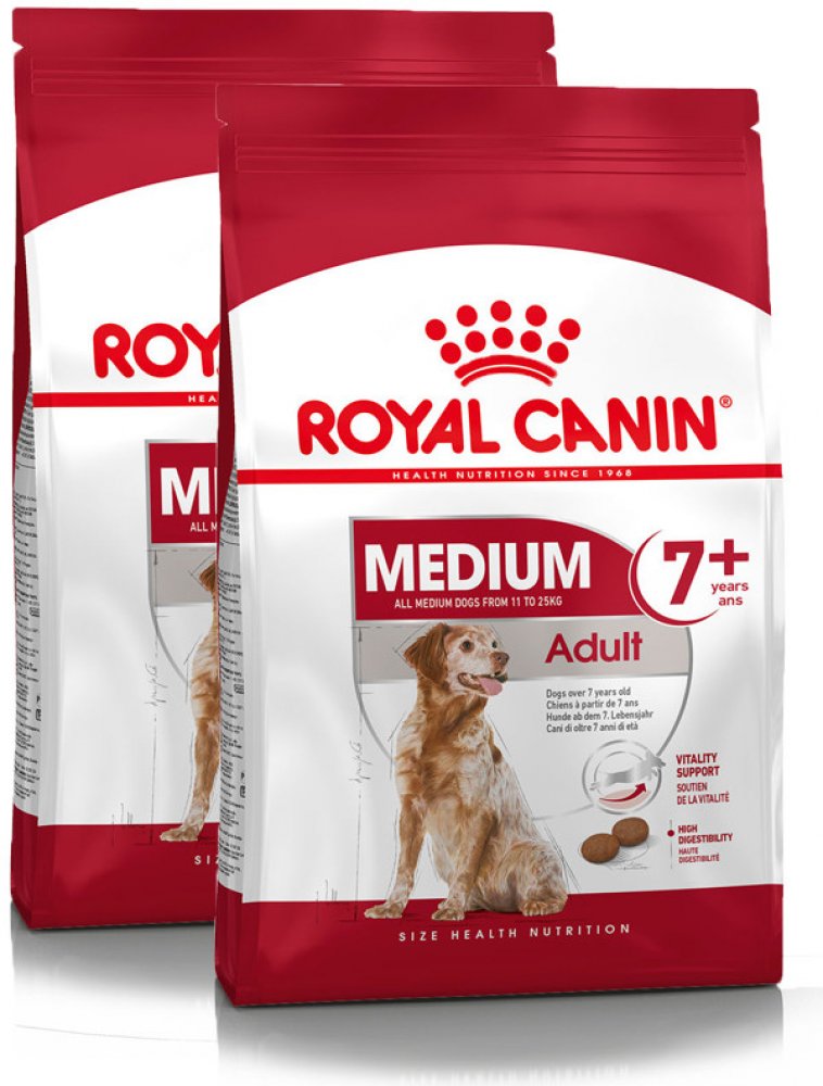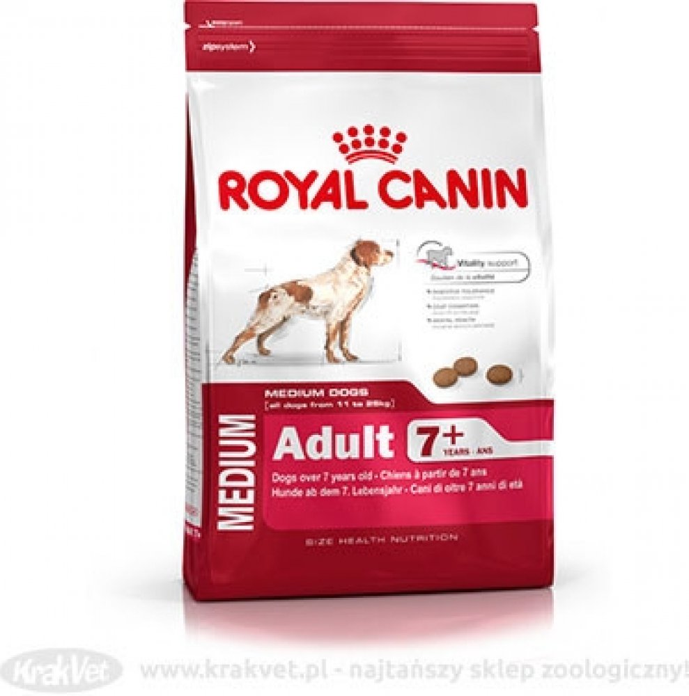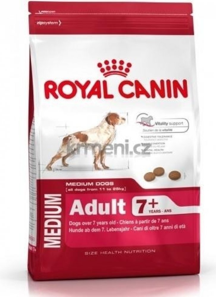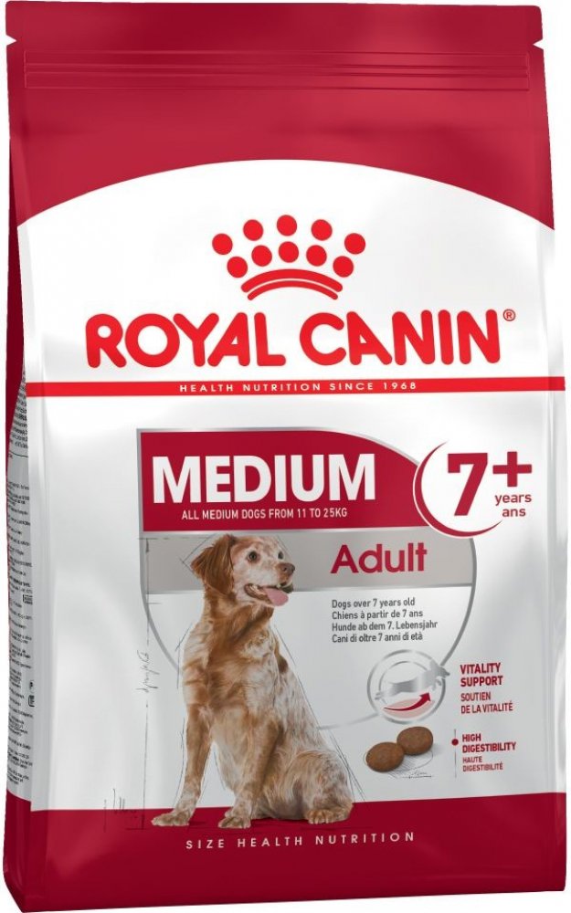 Jak váš pes stárne, určitě ho budete chtít na každém kroku optimálně podpořit. Přesně to je cílem krmiva Royal Canin Medium Adult 7+. Krmivo bylo vyvinuto speciálně pro středně velká plemena od sedmého roku života. Obsah bílkovin je přizpůsoben specifickým fyzickým změnám souvisejícím se stárnutím a může podpořit udržování svalové hmoty. Komplex antioxidantů pomáhá chránit buňky před oxidačním stresem. Prebiotika a vyvážený obsah vlákniny mohou nakonec podpořit normální trávení vašeho mazlíčka. Pro začátek bezstarostné druhé poloviny života. Royal Canin Medium Adult 7+: Vysoce kvalitní kompletní krmivo pro psy středně velkých plemen od 7 let Přizpůsobený obsah bílkovin: ve vysoké kvalitě speciálně pro středně velké psy, podporuje udržení svalové hmoty Ochrana buněk: komplex antioxidantů s vitamíny C a E pomáhá chránit buňky před oxidačním stresem Optimální trávení: prebiotika a upravený obsah vlákniny přispívají k normální funkci střev Kůže a srst: borůvkový olej a omega-3 mastné kyseliny podporují zdravou kůži a srst Skvělá přijatelnost: obzvláště chutné a aromatické Prémiová kvalita: přísně kontrolovaná výroba Příslib kvality značky Royal Canin Všechny produkty Royal Canin procházejí komplexní kontrolou kvality, aby byla zajištěna optimální kvalita krmiva a aby byly splněny individuální nutriční potřeby a životní styl vašeho psa. To znamená, že krmivem Royal Canin Medium Adult 7+ nabízíte svému psovi vysoce kvalitní a vyváženou stravu. Pro větší rozmanitost: Další varianty produktů Royal Canin Medium Adult je k dostání také jako vlhké krmivo v omáčce. Pokud uvažujete o smíšeném krmení granulemi a vlhkým krmivem, jednoduše dodržujte naše doporučení pro krmení. Díky tomu se ujistíte, že váš pes dostane správné množství granulí a vlhkého krmiva.