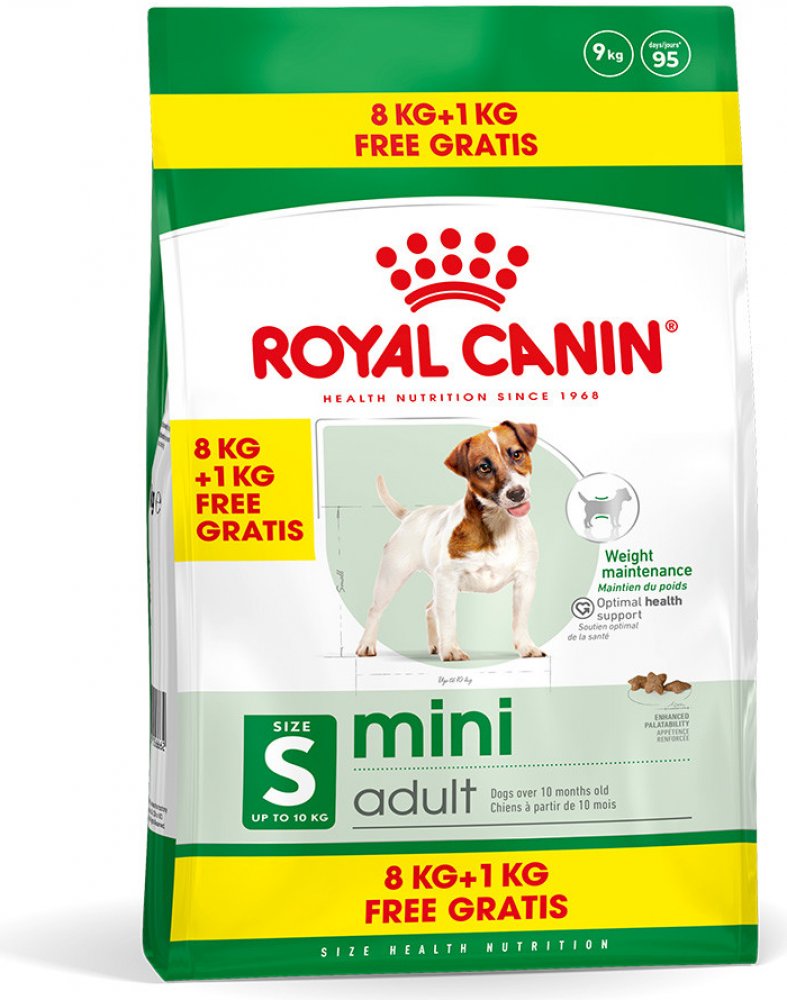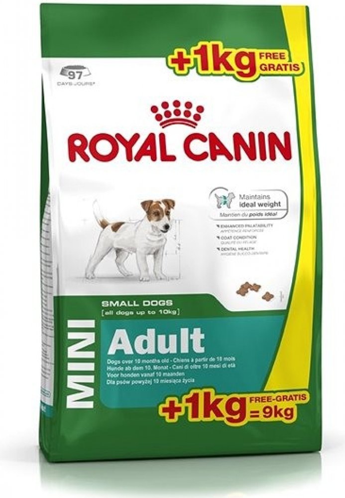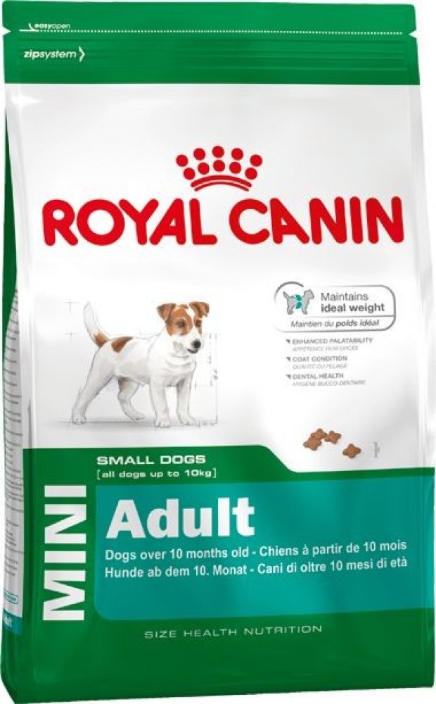 Zuby malých psů rostou těsněji vedle sebe než zuby velkých psů. Zbytky potravy někdy zůstávají na zubech, vož vede ke tvorbě zubního povlaku, který potom vede k tvorbě zubního kamene. Malí psi mají slabší spodní čelist a v případě paradontózy dochází k jejímu silnému poškození. Někteří psi malých ras špatně reaugují na častější výměnu krmiva. To má za následek citlivé trávení a psi někdy trpí průjmy nebo plynatostí. Aby se těmto problémům zamezilo, je potřeba psa krmit dobře stravitelným krmivem s obsahem vybraných složek. Malí psi mají někdy citlivou kůži, což je z části reakce imunitního systému na alergeny a pyly přítomné přítomné kolem nás. Právě při takových problémech by měla být kůže posílena látkami obsaženými v krmivu. Díky krmivu Royal Canin Mini Adult dochází k posílení přirozené ochranné funkce kůže. 30 až 40% všech malých psů trpí nadváhou. Nadváha poškozuje zdraví a může dokonce vést ke zkrácení délky života. Royal Canin Mini Adult je sestaveno tak, aby splňovalo potřeby dospělých psů malých plemen (1 - 10 kg) od 10 měsíců: Prevence zubního kamene: trifosfát sodný váže vápník obsažený ve slinách, takže se z něj nemůže tvořit zubní kámen Ochrana kůže a srsti: vitamíny a aminokyseliny zlepšují bariérovou funkci kůže a zamezují pronikání bakterií. Vitamín A, biotin, rybí tuk, kyselina linolová a zinek pomáhají udržovat lesklou srst a redukují tvorbu šupin Velmi dobrá snášenlivost: pečlivě vybrané živiny a přírodní aroma jsou velmi dobře snášeny. Speciální velikost, forma a struktura granulí usnadňují příjem potravy i u vybíravých psů. Pomáhá udržovat ideální váhu: L-karnitin mobilizuje tělesné tukové rezervy a působí proti ukládání tuku v těle, tím pomáhá udržovat ideální váhu Granule: