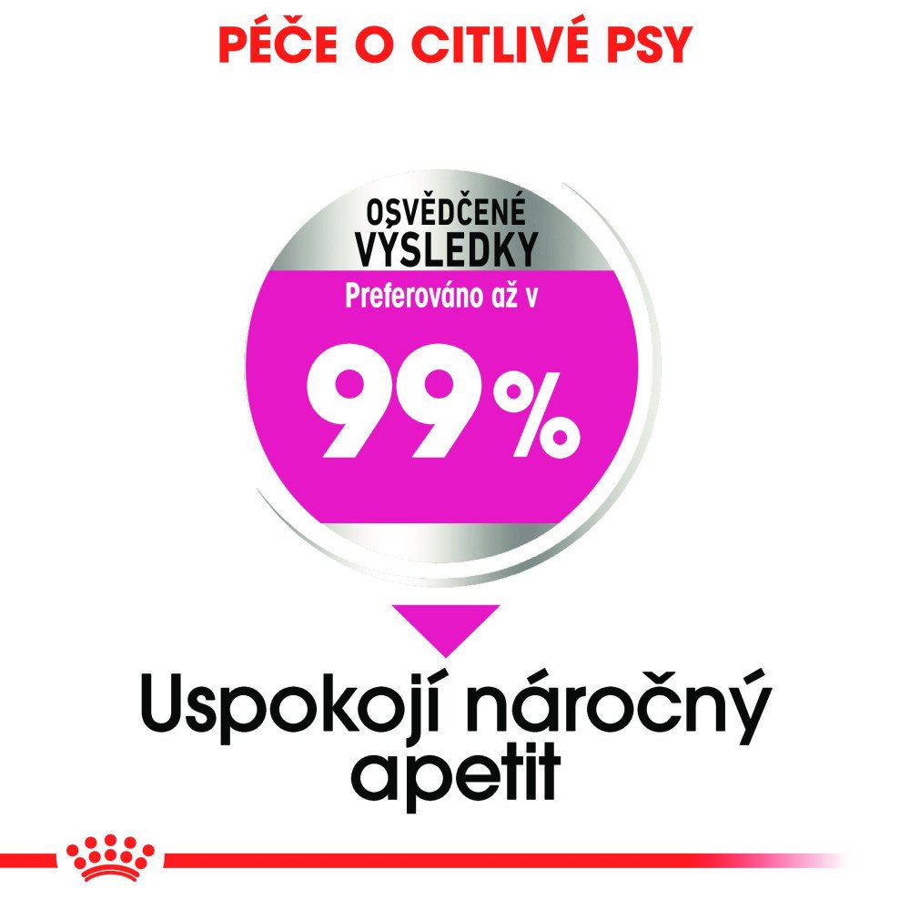 Vůně, velikosti sousta a konzistence pokrmu – to je to, co váš pes vnímá při jídle nejvíc. Krmivo ROYAL CANIN® Exigent Mini je vhodné pro mlsné a vybíravé psy do 10 kg. Obsahuje veškerou výživu pro zdravý život, a navíc skvěle chutná. Royal Canin Exigent Mini je suché krmivo speciálně určené pro výživu vybíravých psů malých plemen do 10 kg. Je vhodný pro dospělé psy od 10 měsíců věku.