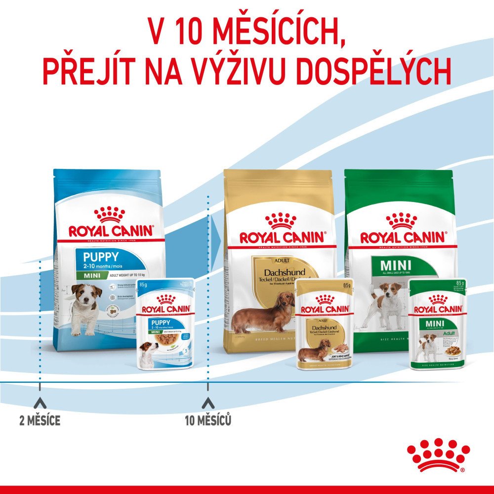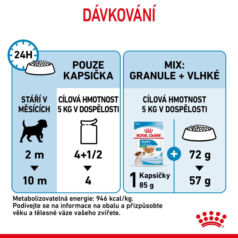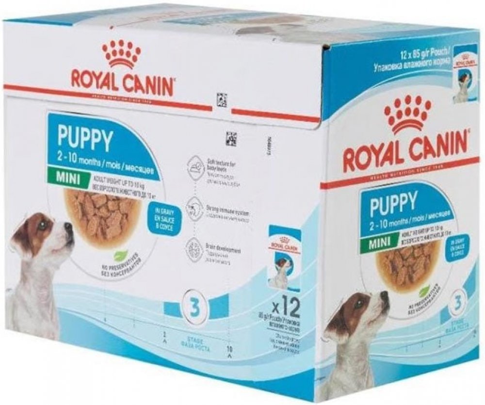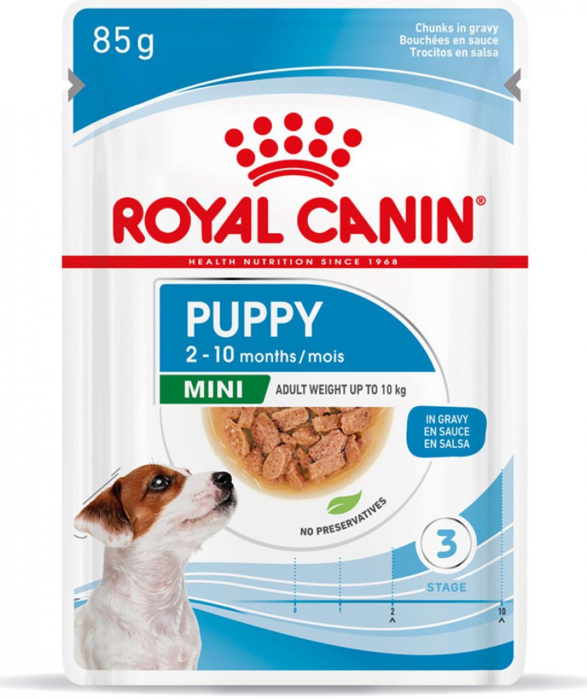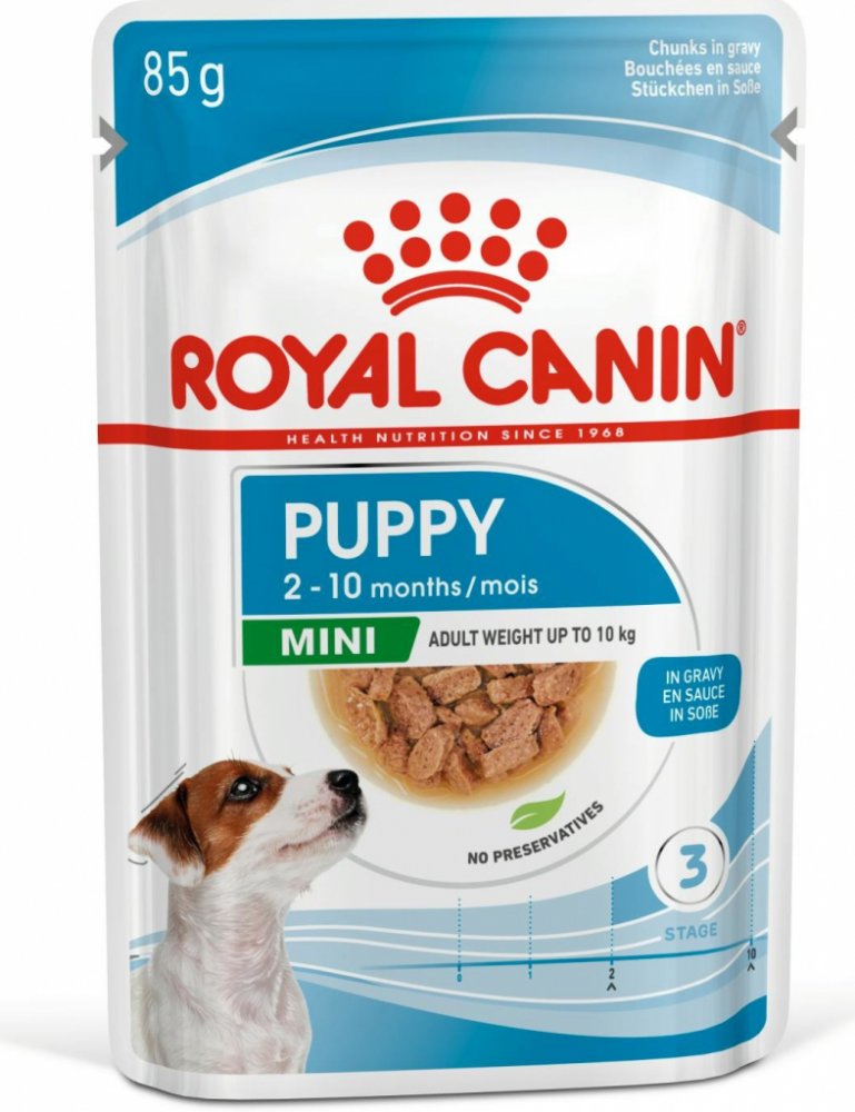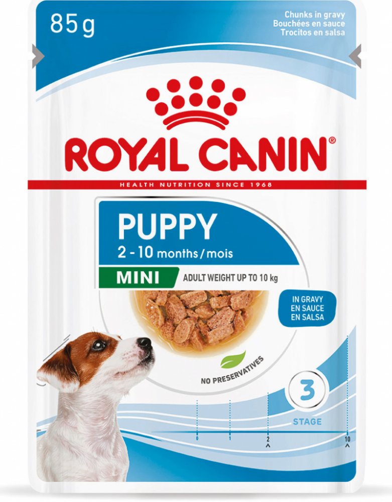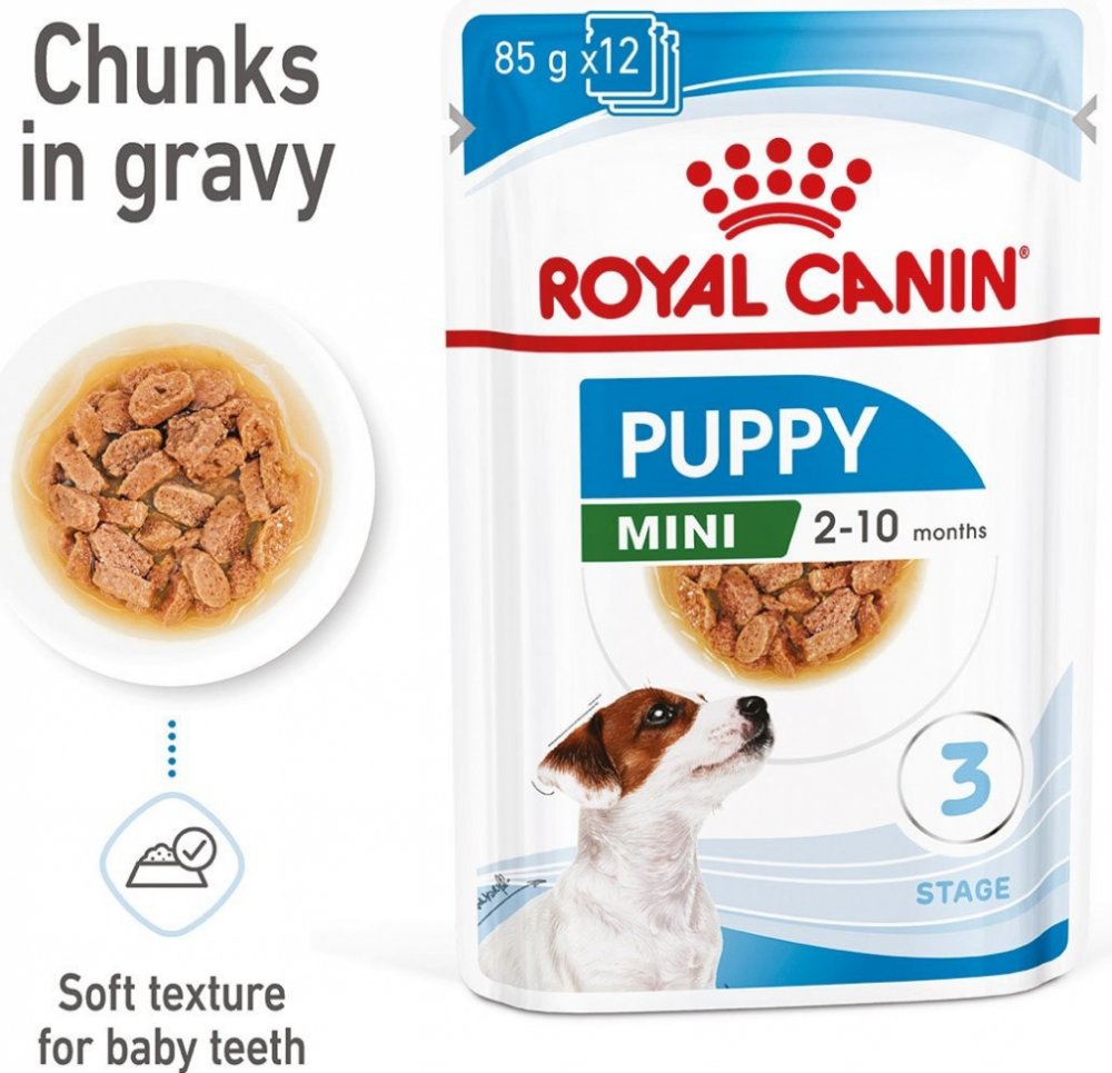 Když vaše štěně stále roste, je důležité podávat mu stravu, která bude podporovat jeho optimální zdraví. Složení kapsičky pro malá štěňata Royal Canin Mini Puppy in Gravy je vytvořeno tak, aby uspokojovalo veškeré nutriční potřeby malých štěňat mladších 10 měsíců, která budou v dospělosti vážit do 10 kg. Přirozená obranyschopnost vašeho štěněte se stále vyvíjí, a proto kapsička pro malá štěňata obsahuje exkluzivní komplex antioxidantů, včetně vitamínu E, který podporuje nezralý imunitní systém ve vývoji. Krmivo také obsahuje prospěšné živiny, které podporují celkové zdraví trávicího traktu, jehož součástí je i rovnováha střevní mikroflóry. Vaše štěně patří k malému plemeni, takže netrvá dlouho, než doroste do své konečné velikosti. To je potřeba brát v úvahu a krmivem mu podávat dostatek energie. Z tohoto důvodu krmivo Royal Canin Mini Puppy in Gravy obsahuje velmi vysoký obsah energie, který nároky vašeho psa splňuje.
