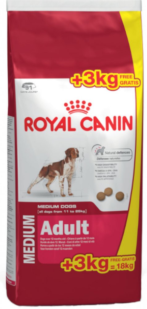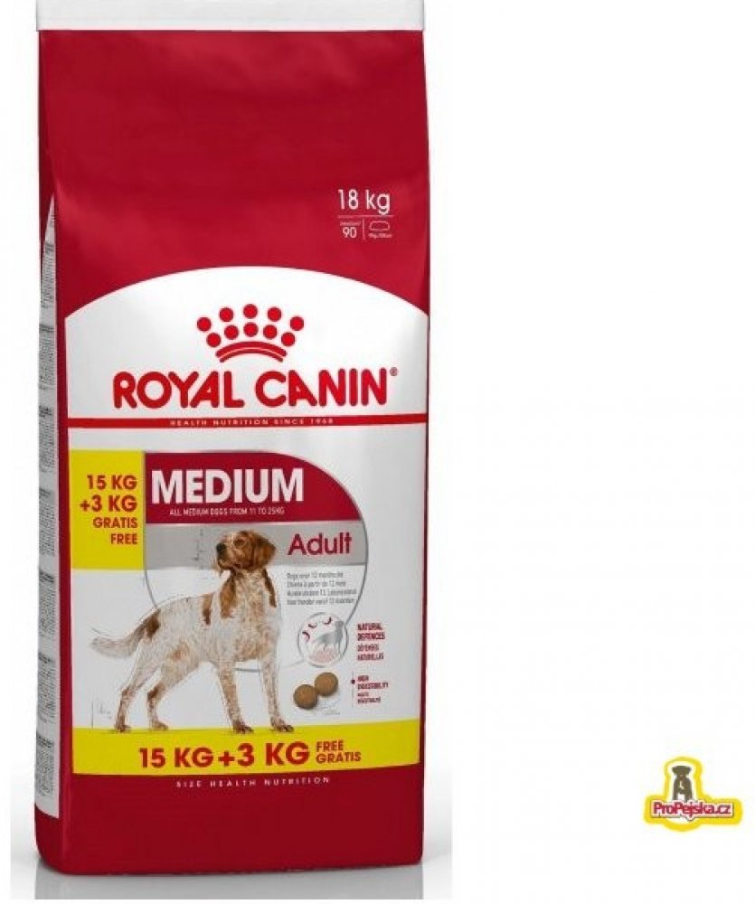 Royal Canin pro dospělé a seniory pro střední plemena drůbeží Royal Canin 18.1 kg suché Size Medium 25 % nízká (<200 mg) 14 % 1.3 % 6.1 % standardní standardní (<25%) standardní podporující (>24%) pro citlivé trávení (7–10 dní) pasivní (prebiotika) možné základní