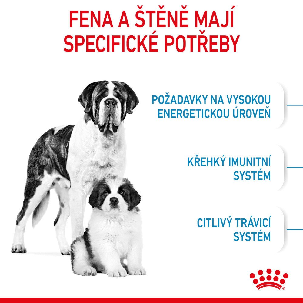 Obsah a složení živin je přizpůsobeno potřebám fen přijímat vysokého množství energie na konci březosti a během laktace.