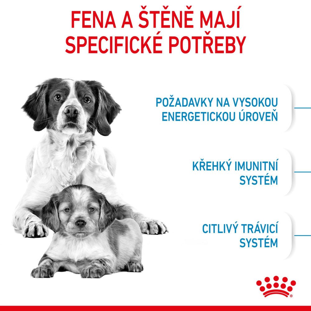 Royal Canin ČR pro štěňata pro střední plemena pro březí / kojící feny Kuřecí Royal Canin 12.0 kg superprémiové suché 10 mm měkké Medium Starter 30 % obiloviny 15 kg z Polska nízká (<200 mg) 22 % 1.3 % 8.0 % standardní středně (25-40%) standardní základní snadný přechod pasivní (prebiotika) možné základní
