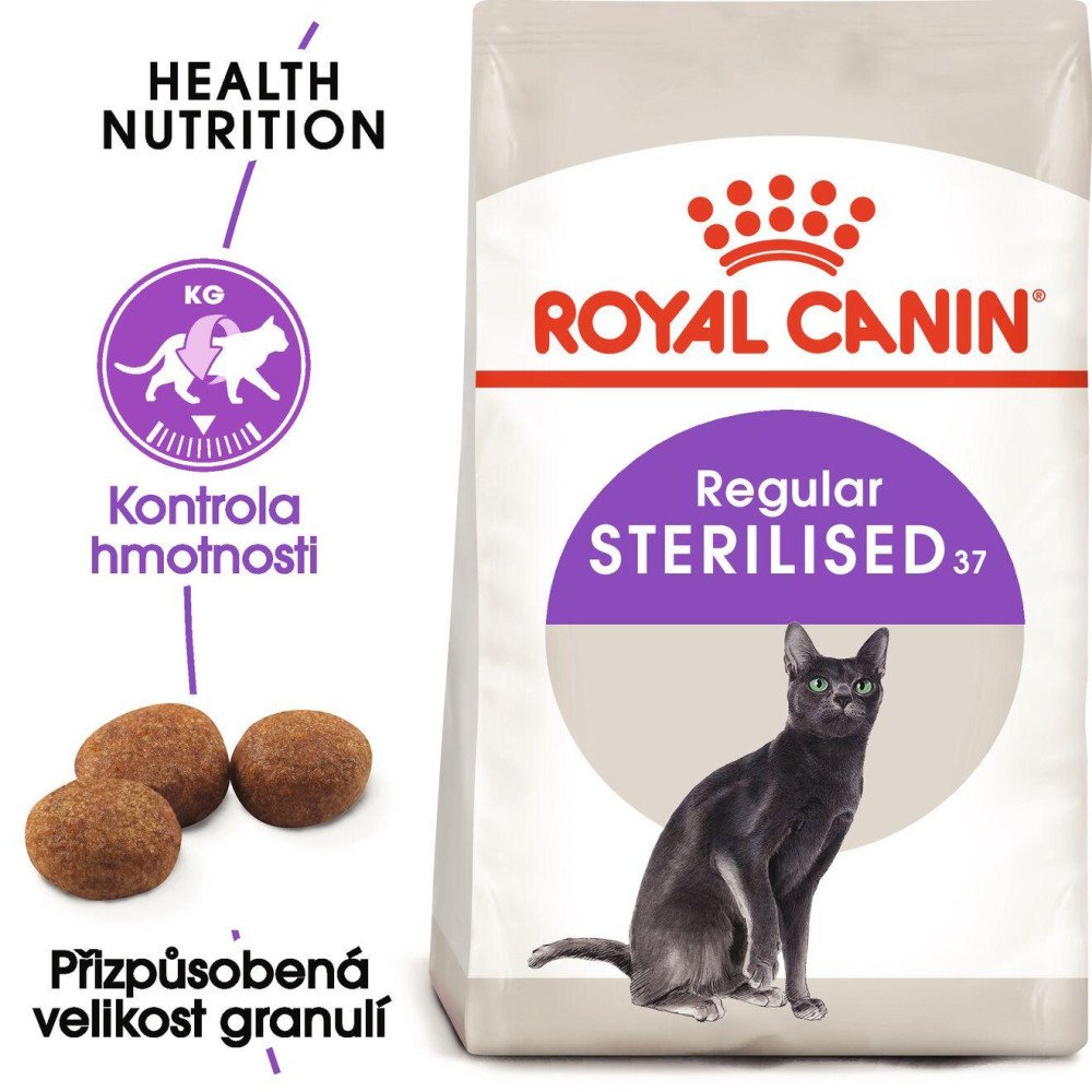 Suché krmivo pro kastrované kočky se sklonem k nadváze. Vzhledem k tomu, že v chování Vaší kočky dojde po kastraci ke změnám, je nutno přizpůsobit její výživu novým požadavkům jejího organismu: Od 48 hodin po kastraci kočka zvýší svou denní dávku potravy o 20 %, avšak současně o 30 % sníží výdej energie, což vede k riziku přibývání na váze. Royal Canin Sterilised podporuje zdravý močový systém dík...