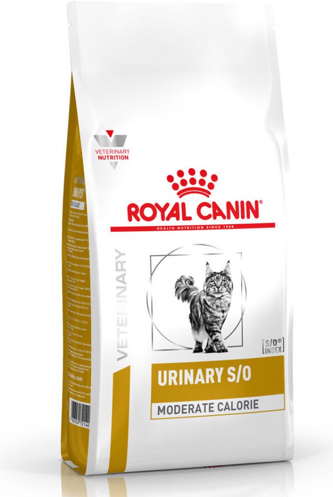 Obecná doporučení: Před zahájením krmení doporučujeme poradit se s veterinárním lékařem. Při krmení dietním krmivem byste měli pravidelně navštěvovat svého veterináře. Pokud se zdravotní stav vaší kočky zhorší, musíte okamžitě vyhledat veterinárního lékaře. Royal Canin Veterinary Feline Urinary S/O Moderate Calorie je veterinární krmivo speciálně vyvinuté pro kočky se sklonem k tvorbě močových kamenů. Krmivo pro kočky obsahuje speciální recepturu, která pomáhá rozpouštět stávající struvitové kameny a snižuje riziko vzniku nových. Granule Royal Canin Veterinary Feline Urinary S/O Moderate Calorie mají moč okyselující a ředící vlastnosti. Vytváří prostředí v moči, které je nepříznivé pro tvorbu močových kamenů a může ztížit tvorbu krystalů. Kromě toho je obsah energie v dietním krmivu pro kočky upraven tak, aby usnadňoval regulaci hmotnosti. To pomáhá Vašemu tygříkovi udržet si ideální postavu. Royal Canin Veterinary Feline Urinary S/O Moderate Calorie: Dietní kompletní krmivo pro kočky k rozpouštění struvitových kamenů a snížení jejich opakovaného výskytu Speciální složení pro močové cesty: okyselení moči, nízký obsah hořčíku Proti struvitovým kamenům: podporuje rozpouštění struvitových krystalů a kamenů Upravený obsah kalorií: může pomoci udržet ideální hmotnost Ředění moči: ředění moči snižuje riziko vzniku struvitových a kalcium-oxalátových kamenů Nízká hodnota RSS: pomáhá snižovat koncentraci iontů, které se podílejí na tvorbě krystalů S/O index: vytváří močové prostředí nepříznivé pro tvorbu struvitových a kalcium-oxalátových kamenů Vhodné pro kombinování: k dispozici také jako mokré krmivo, ideální pro kombinování pro větší rozmanitost