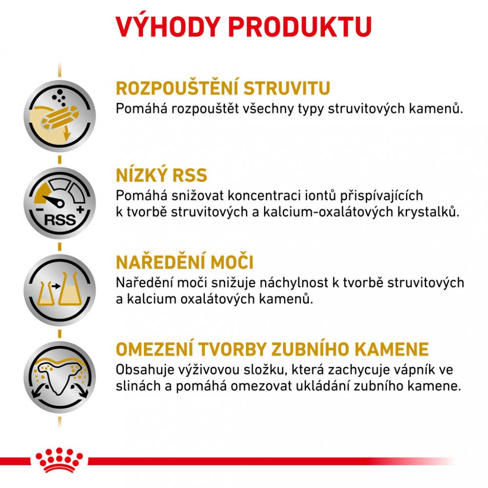 Kompletní dietní krmivo pro dospělé psy malých plemen, které účinně rozpouští struvitové kameny a omezuje jejich opětovnou tvorbu.