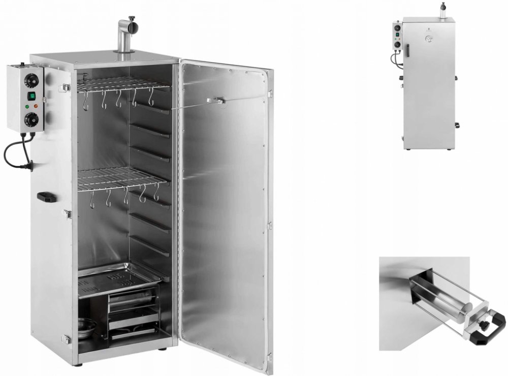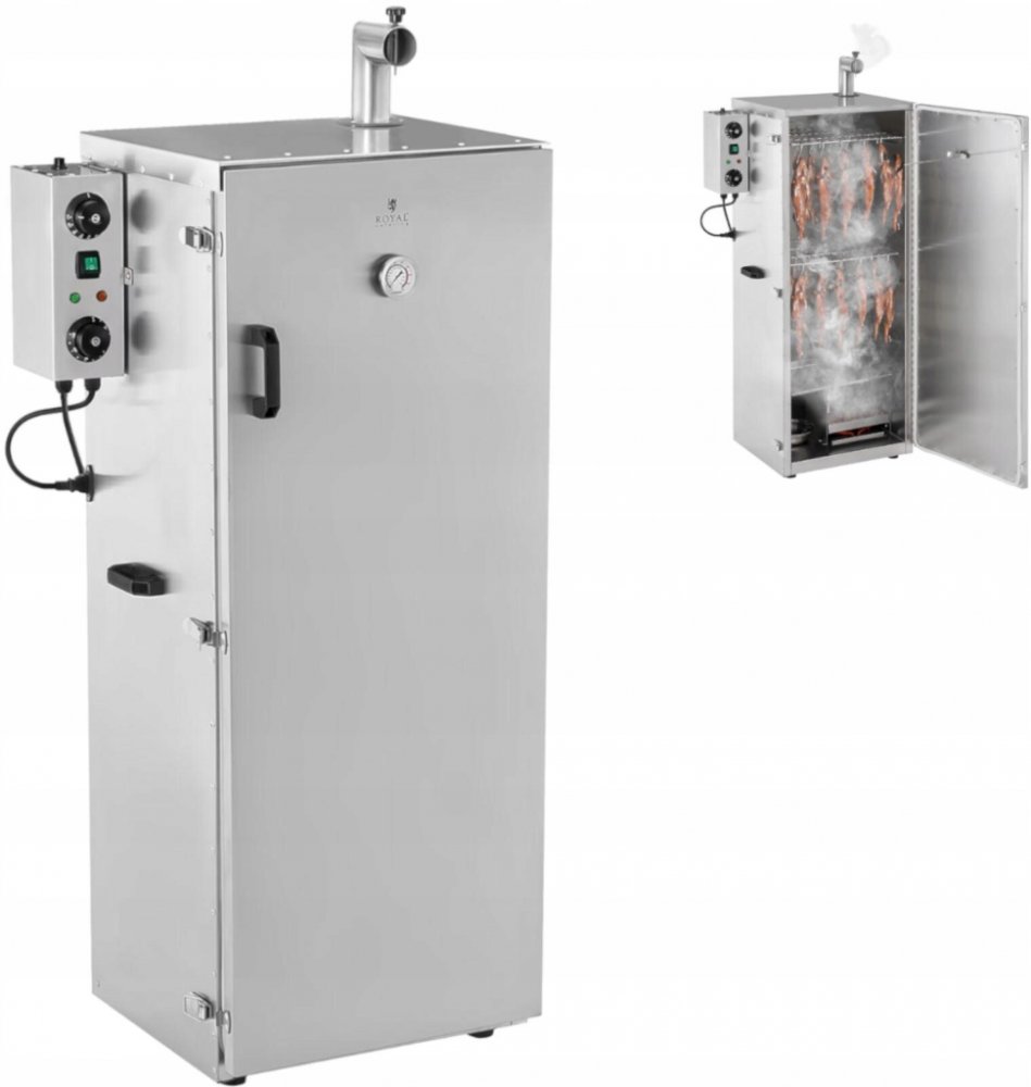 Čerstvé uzené ryby nejsou pochoutkou, kterou si můžete vychutnat výhradně v přístavu. Také maso a uzeniny si udrží po dlouhou dobu nezaměnitelnou chuť. S udírnou RCRO-1300 si můžete delikatesy vytvořit sami a Vašim hostům tak můžete nabídnout skvělý gurmánský zážitek. Kromě toho uzené potraviny vydrží déle, protože jsou kouřem zabity bakterie a houby. Udírna o objemu 147 l nabízí dostatek prostoru nao čerstvé ryby, uzeniny a masné výrobky. Potraviny mohou být zavěšeny hákem v troubě nebo uskladněny na 8 policích. Ty mají minimální odstup 7 cm na výšku. Pro uzení je udicí skříň uzavřena a nádoba s uhlíky se naplní dřevěnými třískami, které produkují kouř na uzení. Nádobu s uhlíky lze bez problémů umístit bez nutnosti otevření skříně. Pod bednou s uhlíky se nachází odpadní nádoba na zhaslé uhlíky vzniklé při uzení. Poté lze nastavit požadovanou teplotu pomocí regulátoru teploty. Teplotní rozsah 0-135 °C umožňuje kouřit stejně teple nebo horce. Dobu kouření lze nastavit regulátorem. Alarm vás bude informovat, jakmile časový limit vyprší. Maximální rozsah časovače je 120 minut. Pokud nebudete po nastavené době spokojeni s výsledkem grilování, lze časovač nastavit opakovaně. Na stranách udírny se nachází dobře čitený termometr, který ukazuje teplotu jak v jednotce Fahrenheit, tak Celsius. Tak vždycky budete o teplotě informovaní, aniž byste museli udírnu otevírat a můžete ji nastavit dle Vašich potřeb. Tuk, který je produkován kouřením, je shromažďovaný odpadní nádobou, která chrání nádobu na uhlíky a zem před nečistotami. Při vysokém vzniku tuku odtéká zachycený tuk přes výlevku do misky pod odpadní nádobou. Tam se shromažďuje a může být snadno zlikvidován. Udírna je vyrobena z vysoce kvalitní ušlechtilé oceli. Materiál se snadno čistí a je velmi robustní, takže si udírna trvale zachovává svůj lesknoucí se povrch. Kromě toho vykazuje nerezová ocel odolnost proti vnějším vlivům a je obzvláště odolná proti nárazu. Jeho hladký povrch se vyznačuje vynikajícími hygienickými vlastnostmi, takže se udírna ideálně hodí na zpracování potravin, jako jsou ryby a maso. Součástí balení je udírna, komínová trubka, odpadní miska, nádoba na zachytávání tuku, nádoba na popel, bedna na uhlíky, regulační jednotka na teplotu s časovačem, 8 odkládacích roštů a 10 udících háčků.