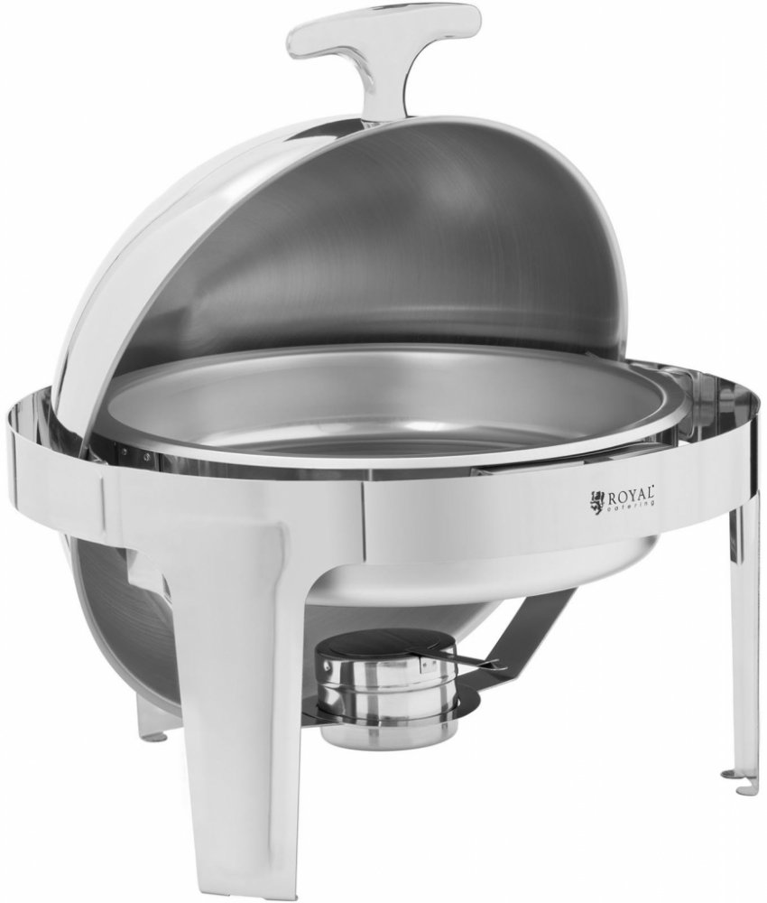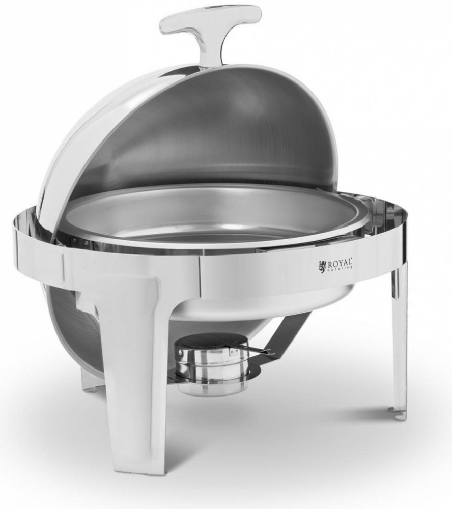 Elegantní chafing dish v nápadném designu z ušlechtilé oceli Chafing dish značky Royal Catering je ideálním přístrojem pro vynikající bufety nebo exkluzivní catering. Ať již v hotelu, v restauraci, ve stáncích s občerstvením, na banketu nebo soukromé akci – tato elegantní hřející nádoba z ušlechtilé oceli je nepostradatelná ve všech případech, kdy je třeba prezentovat pokrmy nápadným způsobem a zároveň je udržovat teplé. Kulovitý tvar a neobvyklý design tohoto chafing dishe upoutá pozornost každého hosta. velký – chafing dish s kulatou nádobou na pokrmy poskytuje objem až 6 l pro velké množství jídla a udržuje jej po dlouhou dobu teplé rovnoměrná teplota – hořáky na palivo zajišťuje rovnoměrné rozložení tepla flexibilita – není potřeba připojení k elektrické síti, proto je chafing dish ideální pro venkovní akce a oslavy na zahradě praktický – promyšlený design pro snadnou přepravu a úsporné skladování snadná údržba – nádoba z ušlechtilé oceli je vyjímatelná, díky čemuž ji lze velmi snadno čistit bezpečnost – protože je jídlo udržováno teplé ve vodní lázni, nehrozí připálení
