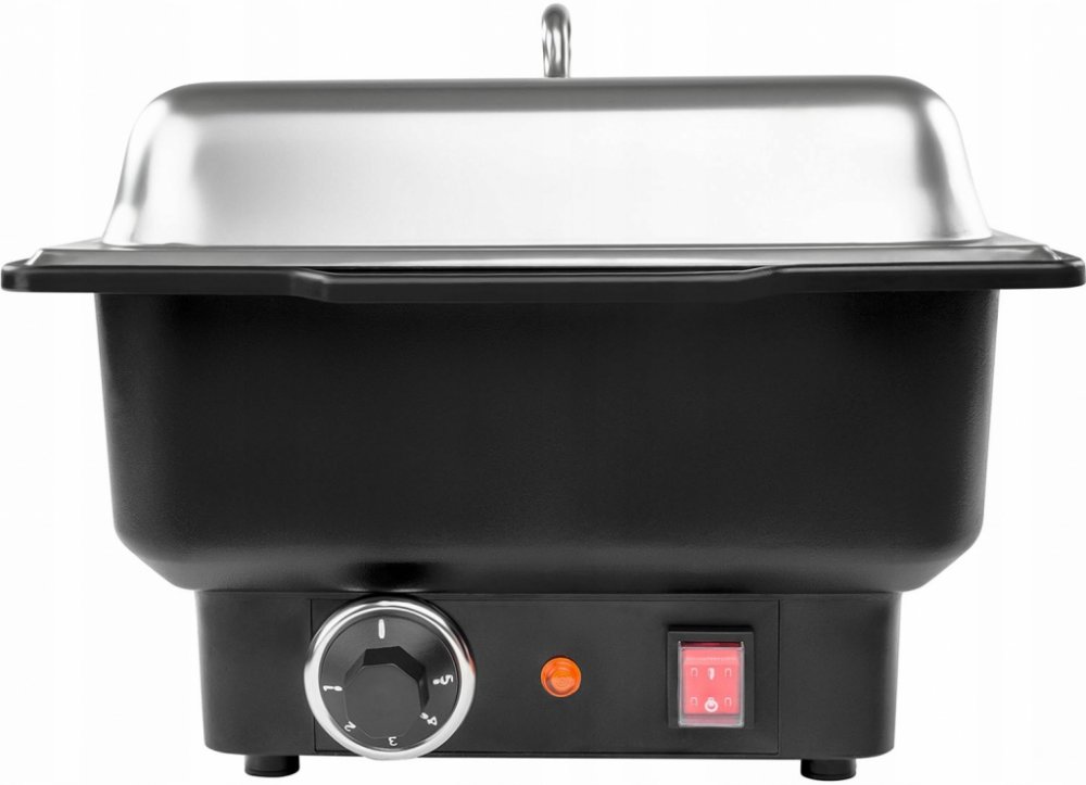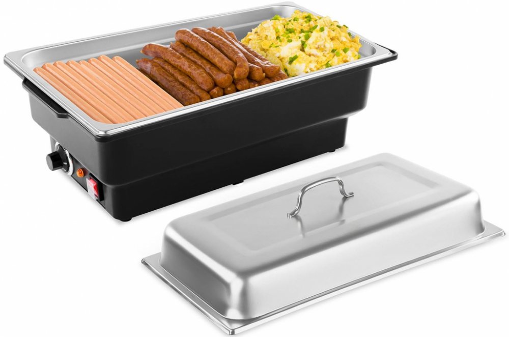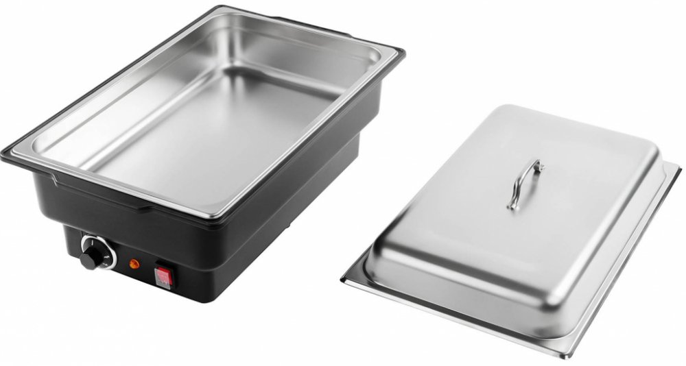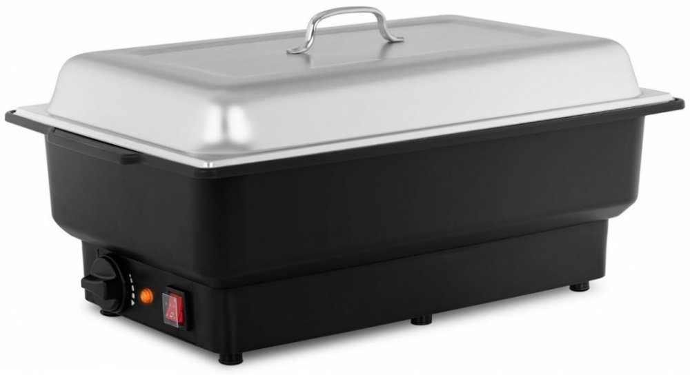 Chafing Dish - 900 W - 100 mm Chcete při oslavách, bufetech a brunchi udržet delší dobu Vaše pokrmy teplé? Pak je chafing dish značky Royal Catering pro Vás to pravé! Za pomoci elektrického ohřívače jídla RCCD-1/1-100-KS-E můžete Vašim hostům podávat teplé pokrmy, které taktéž můžete příslušně prezentovat. Elektrický ohřívač je vyroben z plastu a dodává se včetně gastronádoby GN 1/1. Má hloubku 100 mm a objem 13 litrů. Jaká technologie se za tím skrývá? V plášti ohřívače jídla vzniká díky naplnění vodou vodní lázeň, která šetrně zahřeje potraviny v nádobách a udržuje je na výdejní teplotě. Zařízení má výkon 900 W a pět teplotních úrovní, kterými lze regulovat teplotu vody v rozmezí od 30 do 90 ° C.