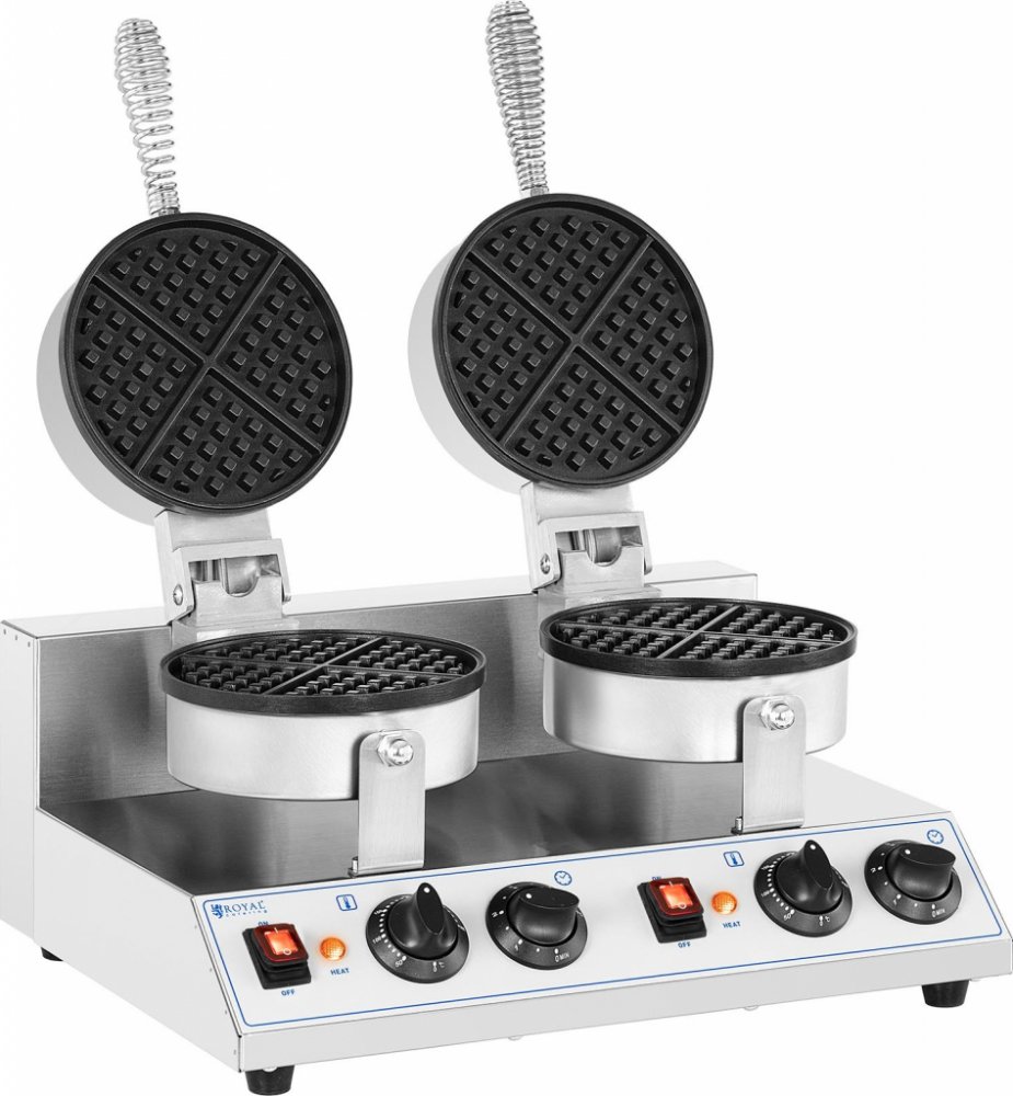 Horké pochoutky z dvojitého gastro vaflovače Čerstvé a křupavé vafle rychle a snadno! Pomocí dvojitého vaflovače RC-WMD01 značky Royal Catering vnesete vůni čerstvě upečených vaflí přímo do vaší kavárny nebo restaurace a zcela okouzlíte své hosty čerstvými a dozlatova propečenými vaflemi. Ať jste pro sladkou variantu s čokoládou a ovocem nebo pro slanou s čerstvými bylinkami a šunkou – tento vaflovač umožňuje podávat během chvíle lahodné vafle o velikosti 185 mm v pestrých variantách. Vše, co potřebujete pro každodenní potřeby pro trh a nejen to, naleznete u výrobce Royal Catering! profesionální – dvojitý vaflovač ideální do restaurací, stánků, kaváren nebo na vánoční trhy rychlý – díky výkonu 2 600 W jednoduchý – plně automatický termostat v teplotním rozsahu 50 - 300 °C a časovač v časovém rozmezí 1 - 5 min bezpečný – izolované rukojeti a protiskluzové nožičky pro bezúdržbové použití dlouhá životnost – díky pečící deska z hliníku