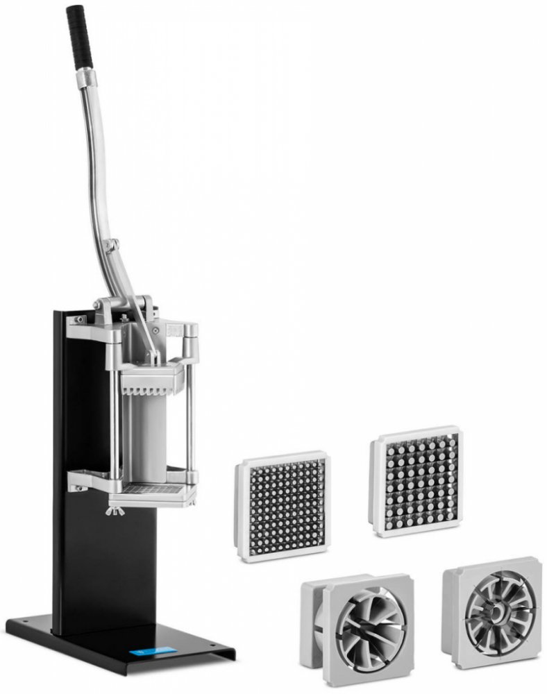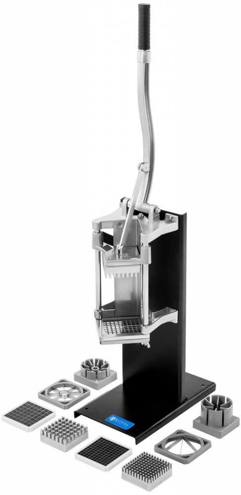 K rychlé přípravě hranolek, tyčinek ze zeleniny, nebo kousků ovoce patří kráječ na zeleninu RCKS-4 od Royal Catering do kuchyně v každé restauraci, bistru a hotelu. Díky 5 vyměnitelným nožům je kráječ vhodný jak na zeleninu, tak na ovoce a přesvědčí vysoce kvalitním zpracováním a snadnou obsluhou. Ideální do restaurací, jídelen, bister a cateringu Vhodné na řezání ovoce (jablka, citrony, pomeranče, atd.) a zeleniny (mrkev, brambory, okurky, atd.) Povrch a nože z ušlechtilé oceli; stojan z ocelového plechu Velice dobré přenesení síly prostřednictvím páky Jednoduchá obsluha Včetně 5 vyměnitelných nožů