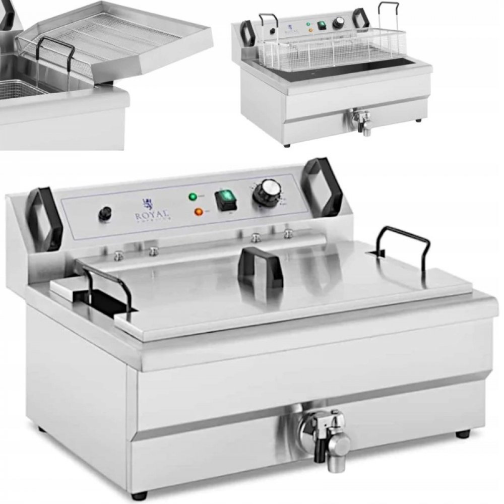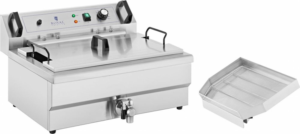 Kompaktní fritéza značky Royal Catering Elektrická fritéza značky Royal Catering byla navržena pro nepřetržité profesionální použití v pekárnách, restauracích, snack barech nebo pojízdných vozících. S výkonem 3 000 W a kapacitou 23 l lze kromě koblih připravovat ve velkém množství i hranolky, ryby nebo cibulové kroužky. Díky kombinaci praktických detailů, jako je boční police nebo vypouštěcí kohout, je použití tohoto zařízení z ušlechtilé oceli pohodlnější než u mnoha jiných fritéz. Royal Catering, online prodejce potřeb pro gastronomii a kuchyňských spotřebičů, klade také u tohoto produktu důraz na promyšlenou funkčnost, jednoduchou obsluhu a údržbu, jako i praktický design. kapacita – velká nádoba pro velké množství fritovaných potravin rychlost – velmi krátká doba ohřevu díky 3 000 W topnému prvku mezi 60 a 200 °C praktický design – boční police na smažené výrobky se zpětným tokem oleje snadné čištění – díky vypouštěcímu kohoutku a povrchům z ušlechtilé oceli ochrana – dva kryty zabraňují znečištění oleje
