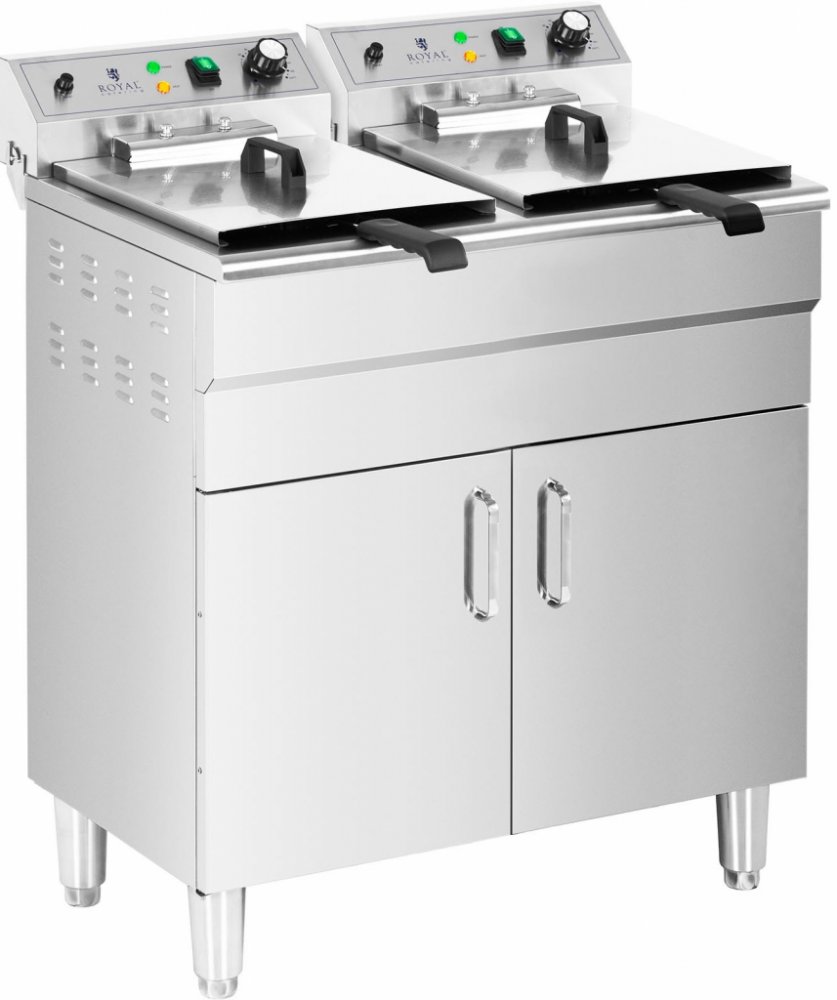 Vysoce funkční profesionální elektrická fritéza se spodní skříní Dvojitá elektrická fritéza RCPKF 26DSH, která disponuje prostornou spodní skříňkou, představuje spolehlivého pomocníka do každé kuchyně. Díky kapacitě nádrže 26 litrů a výkonu 3 000 wattů se ideálně hodí pro profesionální použití v restauracích, rychlých občerstveních a pojízdných občerstveních. Fritéza značky Royal Catering, online ...