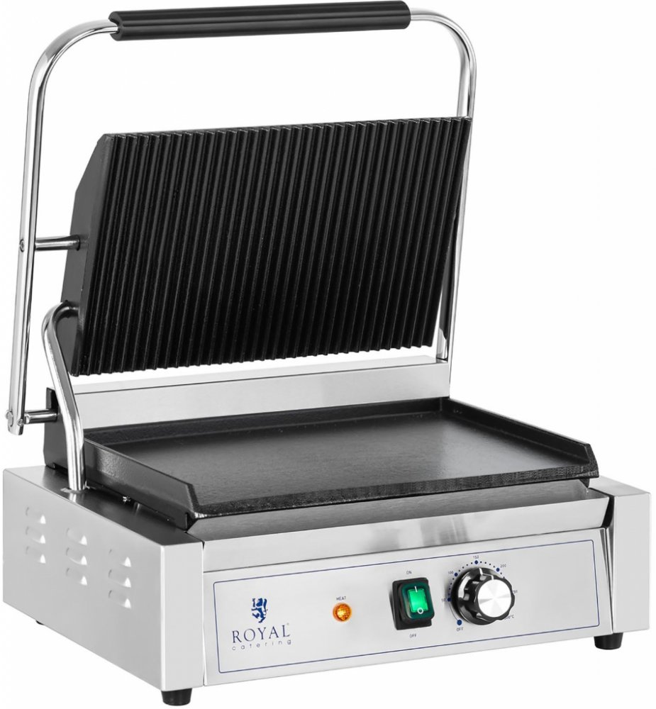 Efektivní grilování s kontaktním grilem o výkonu 2 200 W Profesionální kontaktní gril je určen nejen pro hotelové restaurace, kavárny, rychlá občerstvení a cateringové společnosti, ale také pro soukromé použití. Gril je neuvěřitelně flexibilní a je ideální pro přípravu masa, zeleniny, sendvičů nebo panini. výkon – rychlý ohřev díky výkonu 2 200 W univerzálnost – všestranné použití díky vroubkované a hladké grilovací ploše snadná údržba – ušlechtilá ocel, litina a vyjímatelná nádoba na tuk pro jednoduché čištení spusta prostoru – grilovací desky poskytují velkorysý prostor (33 x 22) efektivita – díky grilování současně na obou stranách