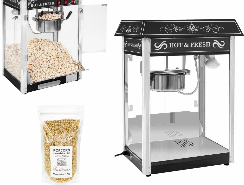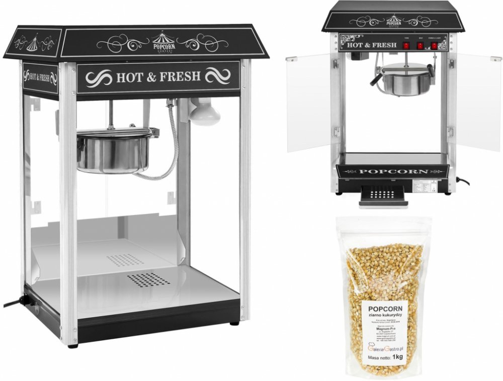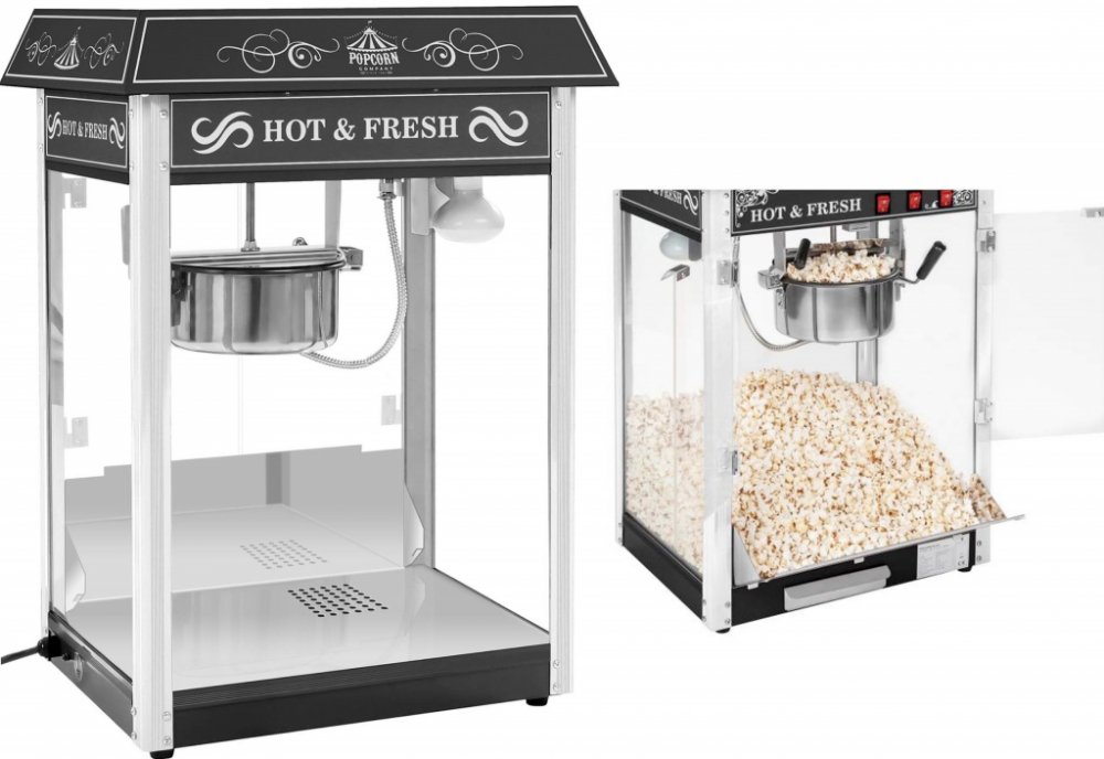Stroj na popcorn černý - americký designStroj na popcorn RCPS-16.2 výrobce RC byl speciálně navržen pro použití v profesionální gastronomii a jeho design neskutečně poutá pozornost zákazníků. Vyniká však nejen svým elegantním vzhledem s černou stříškou, nýbrž také krásným osvětlením, efektivním míchacím systémem a automatickým termostatem. Přesvědčte se o výhodách stroje na popcorn RCPS-16.2 sami a zažijte mimořádný popcornový zážitek – ať už v kině, na pouti, jarmarku nebo festivalu!
