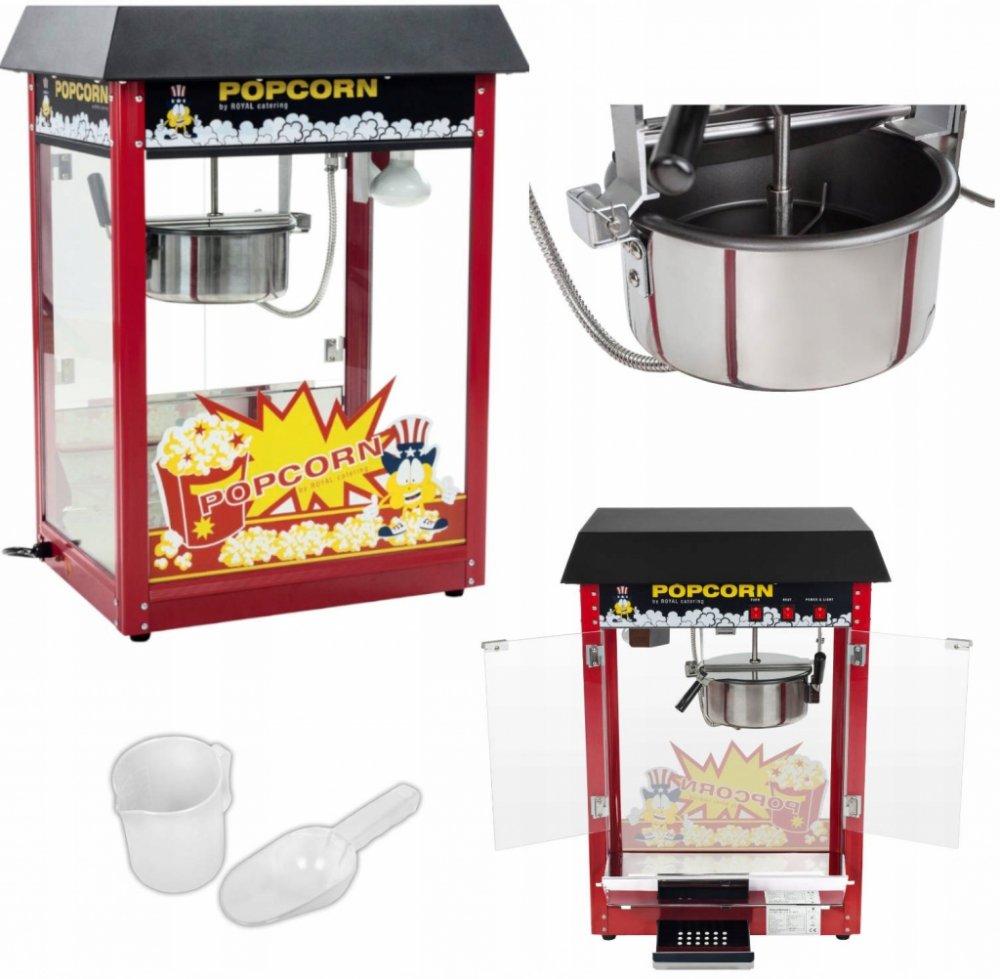 Co je červené, retro a naprosto přitahuje pozornost? Tento stroj na popcorn od společnosti Royal Catering! Jeho výrazný design s červeně smaltovanou střechou je skutečným hitem. Může se pochlubit také vyhřívanou a osvětlenou komorou, systémem míchání a automatickým termostatem. Popcornovač pracuje s výkonem 1500 W a rychle dosáhne provozní teploty. Výkonný motor zajišťuje rovnoměrné rozložení tepl...