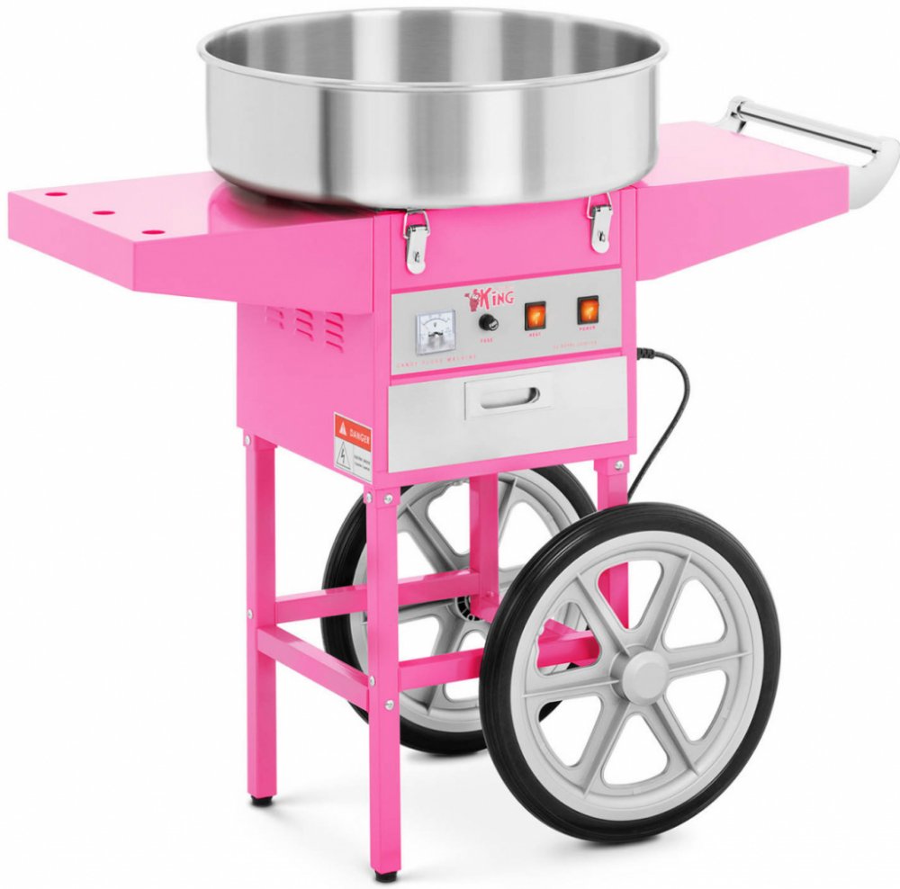 Stroj na cukrovou vatu v sadě s vozíkem a LED svítícími tyčinkami - 52 cm - 1 200 W - 100 ks Koupí stroje na cukrovou vatu v sadě RCZC-1200-W SET1 získáte vše, co je potřeba k bezpečné a zároveň ohromující výrobě a prodeji cukrové vaty. Perfektním doplňkem jakékoli slavnosti je hlavně díky dodávanému vozíku, díky němuž je stroj mobilně použitelný. V sadě se nachází také 100 LED svítících tyčinek (včetně potřebných baterií), které mají sedm barevných režimů a jsou vyrobeny z plastu vhodného pro použití s potravinami. výkonné topné těleso o 1 200 samostatné ovládání termostatu a otáček mobilní a flexibilní použití díky vozíku odměrka pro přesné dávkování (1 jednotka = 12–18 g cukru) 100 LED svítících tyčinek pro velkolepé efekty