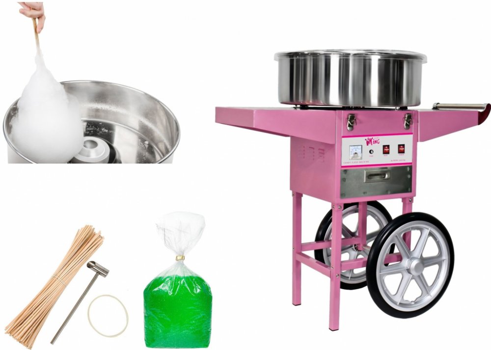 Stroj na cukrovou vatu v sadě s vozíkem a LED svítícími tyčinkami - 52 cm - 1 200 W - 100 ks Koupí stroje na cukrovou vatu v sadě RCZC-1200-W SET1 získáte vše, co je potřeba k bezpečné a zároveň ohromující výrobě a prodeji cukrové vaty. Perfektním doplňkem jakékoli slavnosti je hlavně díky dodávanému vozíku, díky němuž je stroj mobilně použitelný. V sadě se nachází také 100 LED svítících tyčinek (...