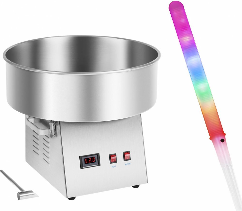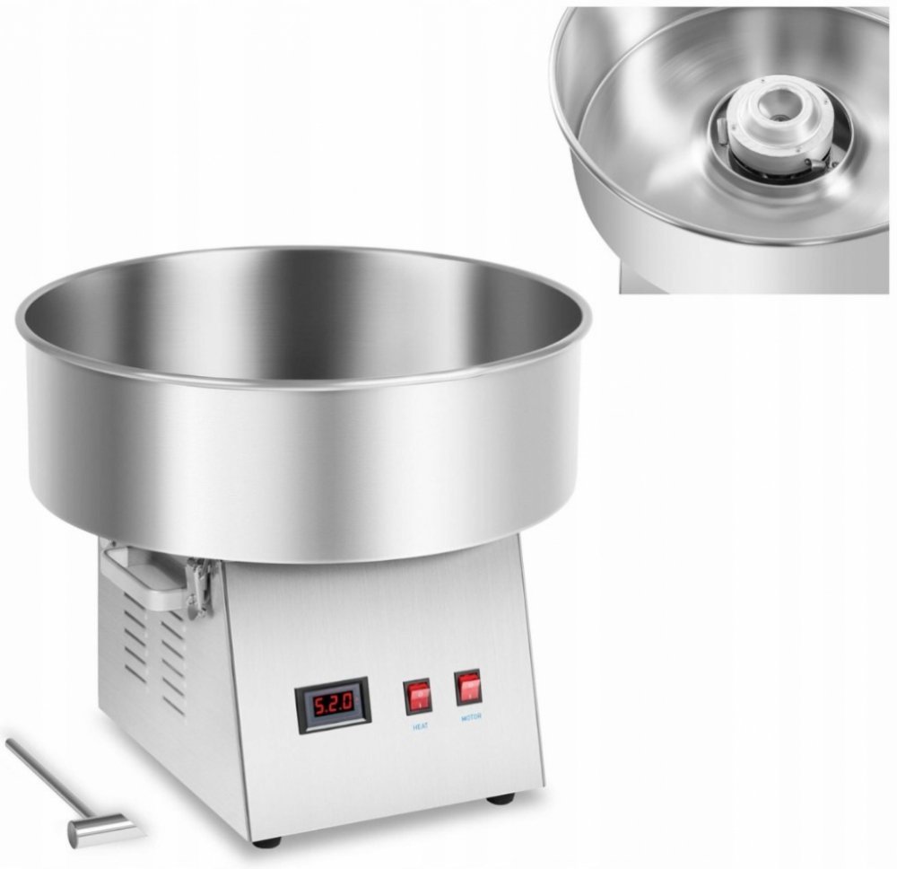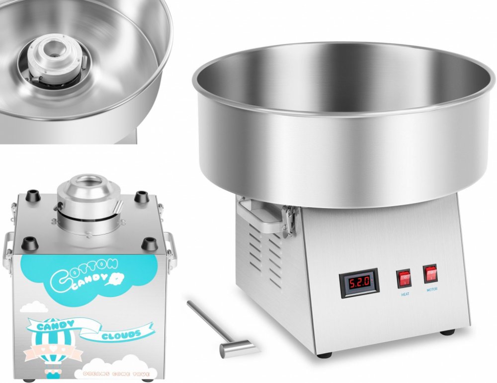 Stroj na cukrovou vatu kombinuje rychlou výrobu s atraktivním a hygienickým prodejním stánkem. S tímto modelem můžete díky vysoce účinnému 1200W topnému tělesu rychle připravit cukrovou vatu. Teplotu a otáčení rotační hlavy můžete ovládat samostatně pomocí dvou přepínačů. Hrnec o průměru 52 cm z ušlechtilé oceli je vhodný pro přípravu velkého množství cukrové vaty. Stroj na cukrovou vatu značky Royal Catering je ideálním společníkem na festivalech, v zábavních parcích, kinech, pouličních slavnostech a při mnoha dalších příležitostech. Aktuální proud lze odečíst na digitálním LED displeji. Stroj má zabudovanou pojistku, která v případě technických problémů automaticky zařízení vypne a tím zajistí maximální bezpečnost. Pogumované nožičky zajišťují stabilitu a neklouzavost. Stroj na cukrovou vatu je také o 20 % tišší než běžné modely. Kompaktní zařízení lze pohodlně přenášet na požadované místo pomocí držadel na boku. Hliníková rotační hlava tohoto modelu je umístěna přímo nad 70W motorem. Převodovka navíc není vybavena plastovými díly, ale je celá z kovu. To nejen přispívá k dlouhé životnosti tohoto stroje na cukrovou vatu, ale také šetří čas a peníze.