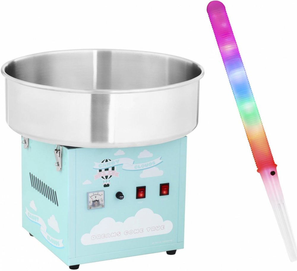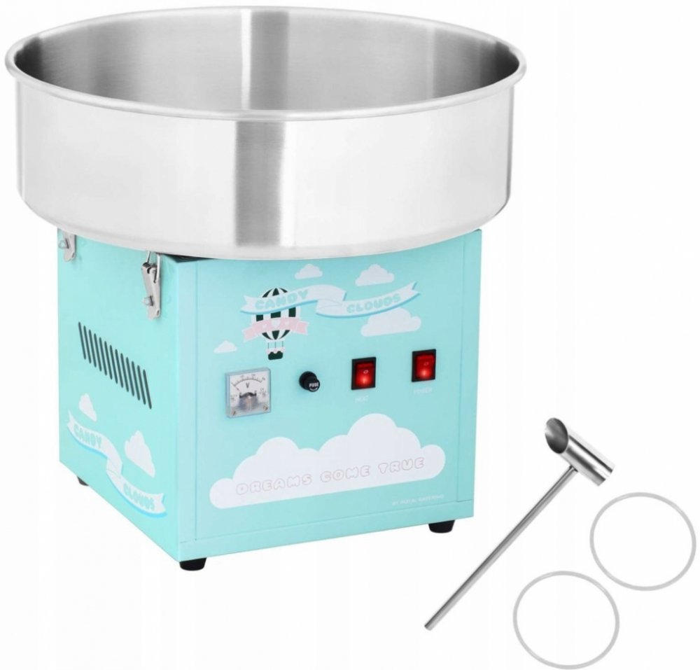 Royal Catering, Váš specialista na gastronomické vybavení, Vám tímto strojem na cukrovou vatu v sadě RCZL-1200-BG SET nabízí vše, co potřebujete pro výrobu cukrové vaty. V sadě se nachází také ochranný kryt, který zaručuje optimální hygienické podmínky. Ať na vánoční trh, festivaly, do snack barů či pro soukromé účely – pořiďte si tento stroj na cukrovou barvu ve výrazné tyrkysové barvě! Stroj na výrobu cukrové vaty disponuje vysoce účinným topným tělesem o výkonu 1 200 wattů. Díky dvěma klopným spínačům můžete snadno ovládat teplotu a otáčky hlavice. Tento stroj je kompatibilní s potravinářskými barvivy, takže si pomocí něj můžete vyrobit různě barevnou a ochucenou cukrovou vatu. Hrnec z vysoce kvalitní ušlechtilé oceli a průměrem 52 cm je ideální na rychlou přípravu velkého množství cukrové vaty. Na výrobu jedné porce z cca 12 až 18 g cukru, které snadno odměříte pomocí přiložené odměrky, budete potřebovat pouze 30 až 60 sekund. Cukrová vata se během výroby navine na špejli a následně snadno vytvaruje. Využijte naplno svou fantazii – vytvářejte vatu ve tvaru květiny či zvířete. Speciální konstrukce hrnce umožňuje vždy čistou práci, neboť cukr a cukrová vata zůstávají především v zachytávací nádobě. Pro dlouhou trvanlivost a životnost je stroj na cukrovou vatu vyroben z robustní slitiny z ušlechtilé oceli a je určen pro použití na stole. Můžete jej ale rovněž upevnit na speciální stojan nebo vozík. V případě technických problémů Vás chrání vestavěná pojistka, která přístroj automaticky vypne. Navíc tento stroj na výrobu cukrové vaty disponuje ochranným elektrickým systémem. Dalším bezpečnostním opatřením jsou čtyři spony, které tlumí vibrace a pomocí nichž tak hrnec na přístroji sedí pevně a bezpečně. Aby bylo možné stroj připravit na další použití, lze misku a odměrku snadno a jednoduše čistit. Díky tomu je stroj velmi rychle připraven k opětovnému použití a čistá práce je vždy zaručena. Rozšiřte si svou gastronomickou výbavu o stroj na cukrovou vatu výrobce Royal Catering a staňte se díky jeho jedinečnému vzhledu středem pozornosti při každé společenské události. Při profesionálním použití stroje v rámci veřejného provozu je pro splnění nejvyšších hygienických nároků povinné používat ochranný kryt. Z tohoto důvodu je součástí balení také ochranný kryt, díky kterému zůstává vaše vata vždy chráněna před bakteriemi, cizími tělesy a jiným znečištěním. Kryt o velikosti XL je vyroben z akrylového skla a vyniká vysokou odolností. Kromě toho se jedná o materiál, který je nesnadno vznětlivý a splňuje všechny zákonné potravinářské normy. Vysoce kvalitní, průhledné akrylové sklo lze snadno umýt běžným saponátem a vodou. Díky velkému otvoru se k cukrové vatě dostanete velice snadno. Ochranný kryt lze snadno umístit a padne na všechny přístroje o průměru cca 52 cm.