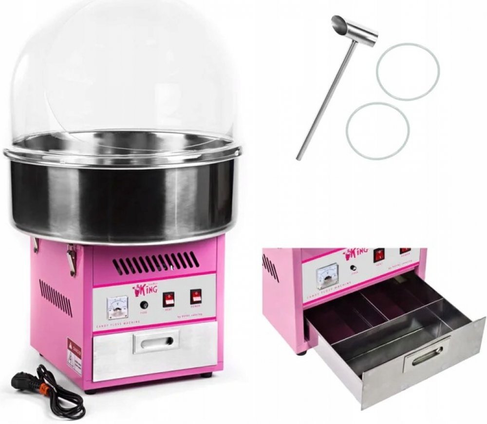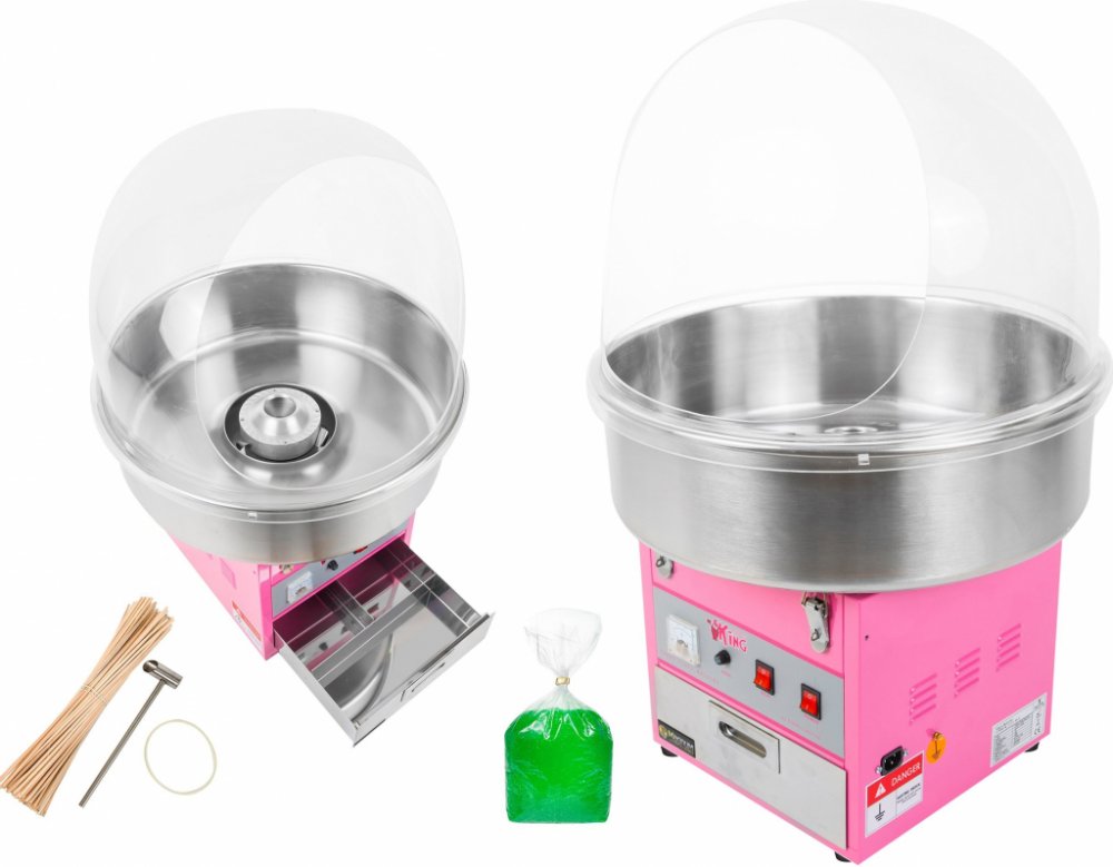Stroj na cukrovou vatu v sadě s LED svítícími tyčinkami - 52 cm - 1 200 W - ochranný kryt - 50 ks Koupí stroje na cukrovou vatu v sadě RCZK-1200E SET1 získáte vše, co je potřeba k bezpečné a zároveň efektní výrobě a prodeji cukrové vaty. Stroj na cukrovou vatu výrobce Royal Catering je ideálním pomocníkem na festivalech, poutích, v zábavních parcích, v kině, na pouličních slavnostech a mnoha dalších místech. Je navržen pro profesionální použití a patří k vysoce kvalitnímu gastronomickému vybavení. S naším strojem na výrobu cukrové vaty máte řadu možností, jak svou cukrovou vatu můžete obměňovat a přizpůsobit přáním zákazníků. V sadě se nachází také praktický kryt, který slouží jako ochrana před bakteriemi, cizími tělesy a nečistotami. Dále obdržíte 50 LED svítících tyčinek (včetně potřebných baterií), které mají sedm barevných režimů a jsou vyrobeny z plastu vhodného pro použití s potravinami. výkonné topné těleso o 1 200 W – jedna porce za 30 až 60 sekund samostatné ovládání termostatu a otáček je možné použít potravinářská barviva pro nápadité kreace včetně odměrky a ochranného krytu, který chrání cukrovou vatu před bakteriemi, cizími tělesy a nečistotami 50 LED svítících tyčinek pro velkolepé efekty