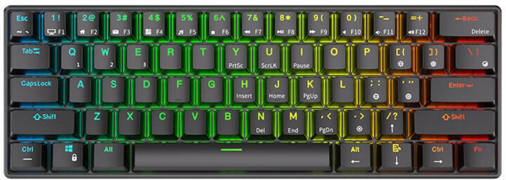 Klávesnice Royal Kludge RK61 dokonale zapadne do vaší herní sestavy! Je vybavena barevným RGB podsvícením se 14 různými režimy osvětlení. Díky tomu si ji můžete přizpůsobit podle svých preferencí a vytvořit tak jedinečné světelné efekty při práci nebo hraní her. Díky svému kompaktnímu provedení se vejde na každý stůl, takže vám zbude více prostoru pro vaše projekty.