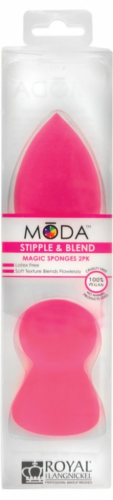 MŌDA® STIPPLE & BLEND MAGIC SPONGES 2 ks Houbičky jsou vhodné k preciznímu nanesení make-upu či korektoru. Použití: houbičku mírně namočte a vymačkejte z ní přebytečnou vodu. Poté naneste make-up na obličej a „vťupkáním“ vpracujte do pleti.