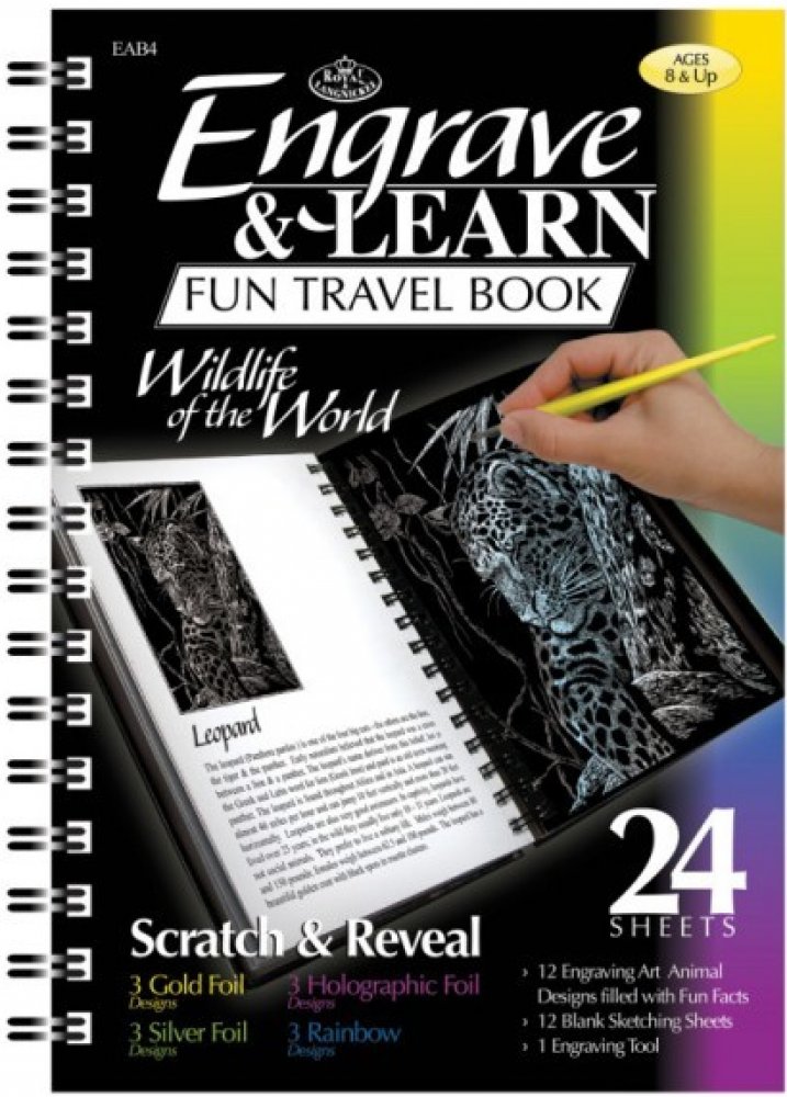 ROYAL and LANGNICKEL je sada škrabacích obrázků s motivem afrických zvířat. Vyškrabte si krásné obrázky. Stačí jen když odstraníte ochrannou folii. Přiloženým škrabákem vyškrabejte do obrázku Váš motiv. A máte hotovo! Ke každému škrabacímu obrázku je anglický popis pro zlepšení Vaší angličtiny. Praktický kroužkový blok je ideální na cesty.Balení obsahuje:3x škrabací obrázek zlatý,3x škrabací obrázek holografický, 3x škrabací obrázek stříbrný, 3x škrabací obrázek duhový, 1x plastové škrabací pero s železným hrotem.Vhodné od 8 let.