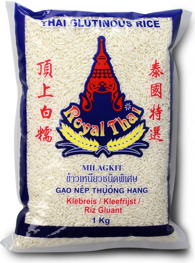 Prémiová thajská lepkavá rýže: Vysoce kvalitní rýže značky ROYAL THAI s autentickou chutí a kvalitou.Charakteristická textura: Po uvaření je rýže jemná, mírně lepkavá a ideální pro tradiční asijská jídla.Tradiční použití: Skvělá pro dezerty, rýžové koláče nebo jako příloha k hlavním jídlům.Lepkavá rýže 100 %.Neobsahuje běžné alergeny. Pro jistotu zkontrolujte etiketu produktu.Energie: 1485 kJ / 356 kcalTuky: 0 g- z toho nasycené mastné kyseliny: 0 gSacharidy: 80 g- z toho cukr: 0 gBílkoviny: 6,67 gSůl: 0 gVezměte 175 g rýže a dvakrát ji důkladně opláchněte.Přidejte 225 ml vody.Nasazte víko na rýžovar a zapněte ho.Po vypnutí rýžovaru nechte rýži přikrytou 10 minut.