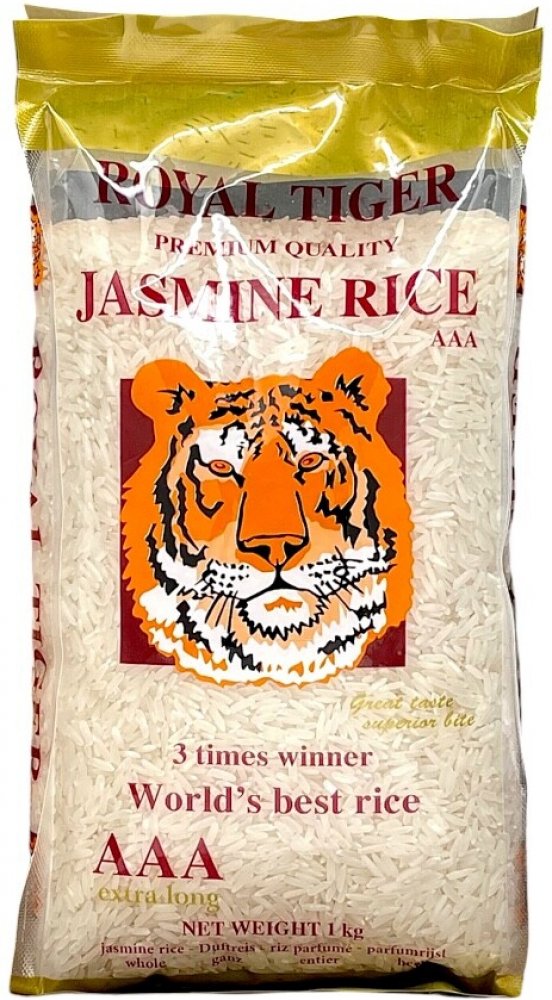 Jasmínová rýže, nazývaná také parfémová rýže, je známá svou jemně ořechovou příchutí a sladkou aromatickou vůní. Tato tradiční dlouhozrnná odrůda rýže prvotřídní kvality z Kambodže se vyznačuje bohatou vůní jasmínu a jemnou chutí. Jasmínová rýže Royal Tiger je ideální kombinace s pikantními kořeněnými a sladkými jídly.