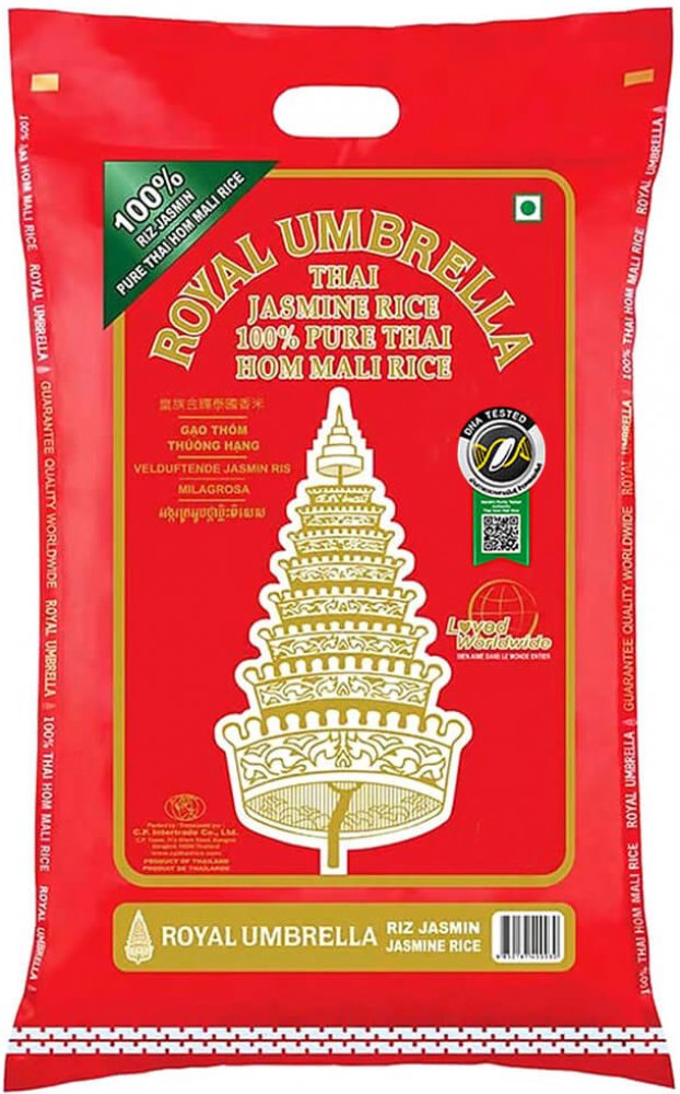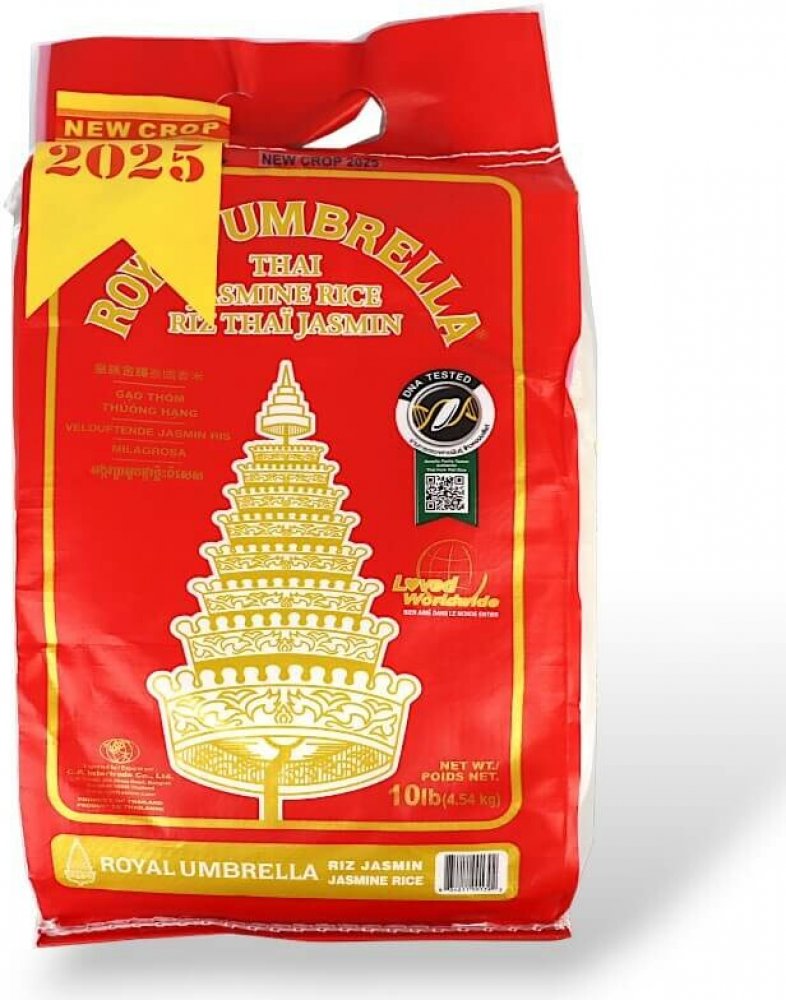 Thajská jasmínová rýže Royal Umbrella neobsahuje téměř žádný tuk. Jasmínová rýže nenabývá příliš na objemu, proto doporučujeme vařit trochu větší množství vody, než jste zvyklí. Ale také proto, že jí sníte mnohem více, než je tomu u normální rýže, je prostě neodolatelně jemná a chutná. Tato rýže je ideální přílohou k naším tuňákovým kouskům, které můžete také zakoupit v našem