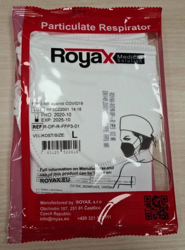 Respirátor Royax FFP3 je navržen pro jednorázové použití. Délka nošení závisí na prostředí a úrovni kontaminace, obvykle se doporučuje vyměnit respirátor po 8 hodinách používání.