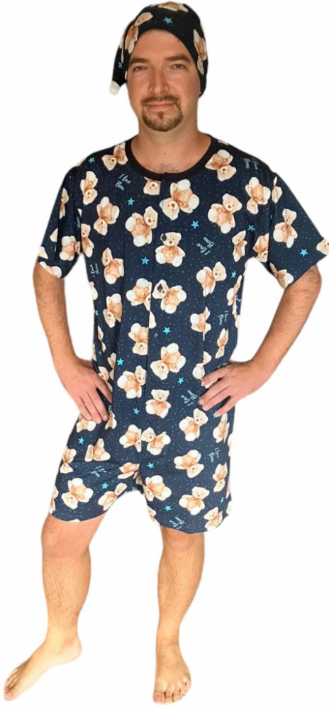 Rozárka P50 medvídek pánský overal na spaní krátký tm.modrý