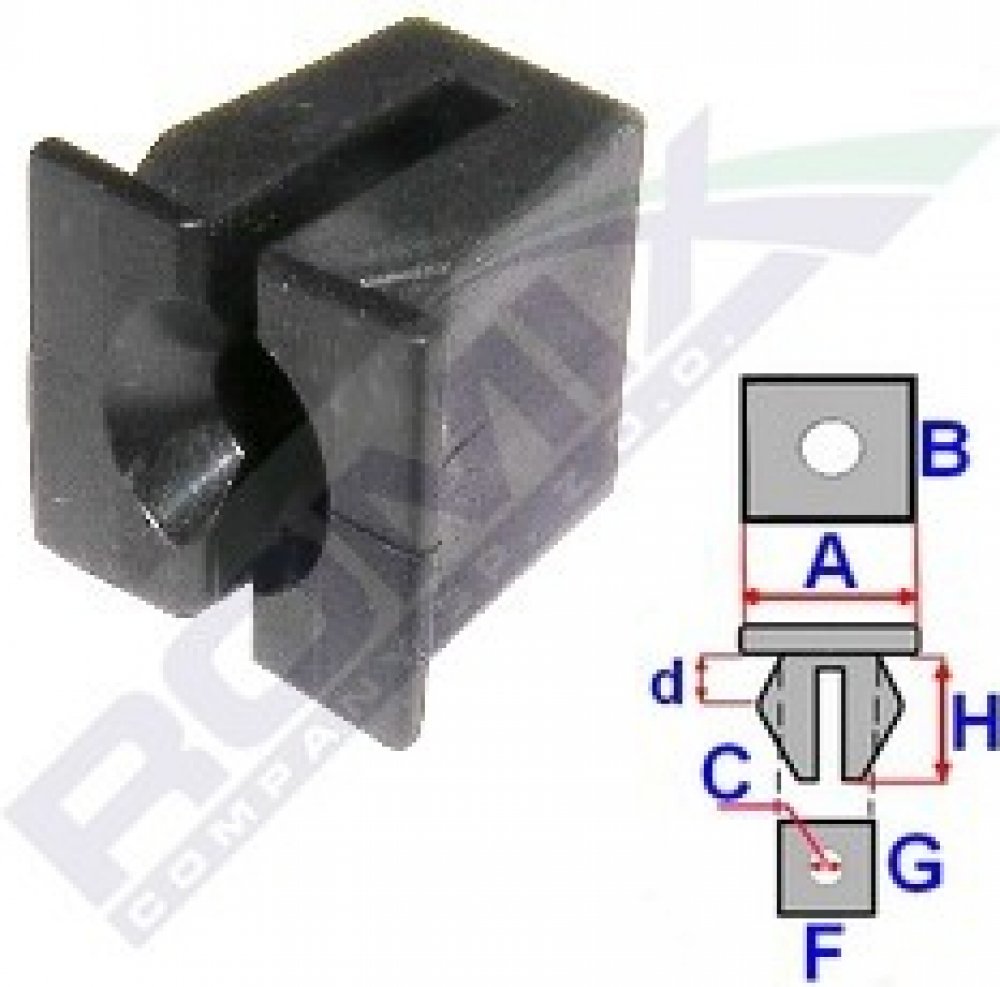 Rozpínací matice pro kryty podvozku Romix 15253 - 10 ks rozměry: A = 15,6mm - B = 14mm - C = 6mm - d = 2,4mm - H = 14,2mm balení obsahuje: 10 ks popis: rozpínací matice umístění příchytky: exteriér aplikace: ochranné kryty, světlomety, přední mřížka výskyt: Ford, Mercedes Benz, Opel