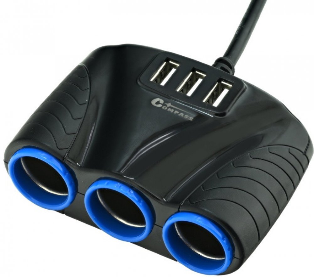 ROZTROJKA ZÁSUVKY ZAPALOVAČE + 3x USB - COMPASS 07433