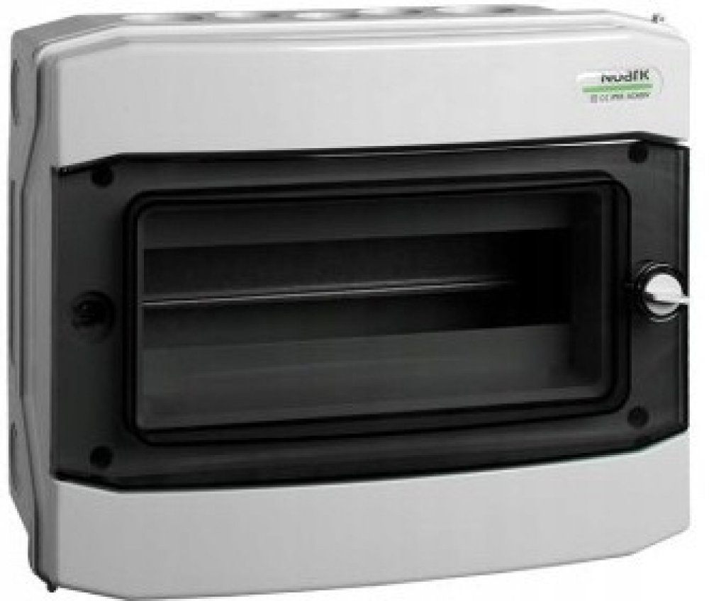 Skříň má jednu až tři řady, 4 až 48 modulů. Dodává se s průhlednými dveřmi.