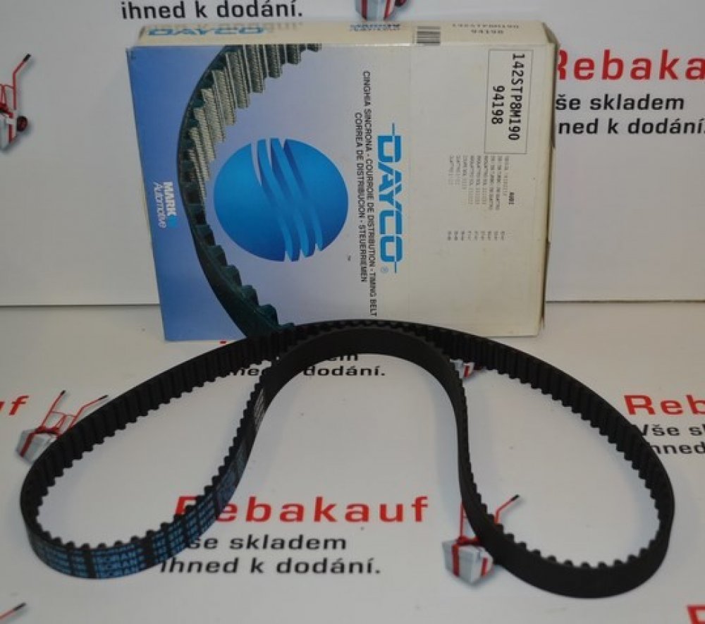 Název: rozvodový řemen Informace o autodílu:Výrobce: DAYCOpočet zubů 142Sirka v mm 19Číslo dílu: 94198OE:AUDI 074109119Náhradní díl pasuje dle katalogu na modely:Značka Model Typ od - do KW HP Kód motoru KaroserieAUDI 100 (44, 44Q, C3) 2.0 KAT 01-1988 - 11-1990 85 115 RT limuzína AUDI 100 (44, 44Q, C3) 2.2 08-1984 - 12-1988 101 137 KU limuzína AUDI 100 (44, 44Q, C3) 2.2 E Turbo quattro 08-1986 - 11-1990 121 165 MC limuzína AUDI 100 (44, 44Q, C3) 2.2 KAT 06-1989 - 11-1990 101 137 HX, KU limuzína AUDI 100 (44, 44Q, C3) 2.2 quattro 08-1984 - 12-1988 101 137 KU limuzína AUDI 100 (44, 44Q, C3) 2.2 Turbo 08-1986 - 11-1990 121 165 MC limuzína AUDI 100 (44, 44Q, C3) 2.3 E 10-1986 - 11-1990 100 136 NF limuzína AUDI 100 (44, 44Q, C3) 2.3 E 01-1990 - 11-1990 98 133 NF, AAR limuzína AUDI 100 (44, 44Q, C3) 2.3 E quattro 08-1986 - 11-1990 100 136 NF limuzína AUDI 100 Avant (44, 44Q, C3) 2.0 E KAT 01-1988 - 11-1990 85 115 RT kombík AUDI 100 Avant (44, 44Q, C3) 2.2 08-1984 - 12-1988 101 137 KU kombík AUDI 100 Avant (44, 44Q, C3) 2.2 KAT 06-1989 - 11-1990 101 137 HX, KU kombík AUDI 100 Avant (44, 44Q, C3) 2.2 quattro 08-1984 - 12-1988 101 137 KU kombík AUDI 100 Avant (44, 44Q, C3) 2.2 Turbo 08-1986 - 11-1990 121 165 MC kombík AUDI 100 Avant (44, 44Q, C3) 2.2 Turbo quattro 08-1986 - 11-1990 121 165 MC kombík AUDI 100 Avant (44, 44Q, C3) 2.3 08-1986 - 11-1990 100 136 NF kombík AUDI 100 Avant (44, 44Q, C3) 2.3 E quattro 08-1986 - 11-1990 100 136 NF kombík AUDI 200 (44, 44Q) 2.2 Turbo 02-1988 - 12-1990 140 190 2B limuzína AUDI 200 (44, 44Q) 2.2 Turbo 08-1985 - 09-1991 121 165 MC limuzína AUDI 200 (44, 44Q) 2.2 Turbo 02-1988 - 12-1990 147 200 1B limuzína AUDI 200 (44, 44Q) 2.2 Turbo quattro 02-1988 - 11-1990 147 200 1B limuzína AUDI 200 (44, 44Q) 2.2 Turbo quattro 01-1985 - 12-1991 121 165 MC limuzína AUDI 200 Avant (44, 44Q) 2.2 Turbo quattro 09-1983 - 12-1990 121 165 MC kombík AUDI 200 Avant (44, 44Q) 2.2 Turbo quattro 02-1988 - 12-1991 147 200 1B kombík AUDI 90 (81, 85, B2) 2.0 quattro 08-1984 - 08-1986 85 116 JS limuzína AUDI 90 (89, 89Q, 8A, B3) 2.0 07-1988 - 09-1991 85 115 PS limuzína AUDI 90 (89, 89Q, 8A, B3) 2.2 E 04-1987 - 07-1991 100 136 KV limuzína AUDI 90 (89, 89Q, 8A, B3) 2.3 E 04-1987 - 09-1991 98 133 NG limuzína AUDI 90 (89, 89Q, 8A, B3) 2.3 E 04-1987 - 07-1991 100 136 NG limuzína AUDI 90 (89, 89Q, 8A, B3) 2.3 E quattro 04-1987 - 07-1991 100 136 NG limuzínaAUDI 90 (89, 89Q, 8A, B3) 2.3 E quattro 04-1987 - 09-1991 98 133 NG limuzína AUDI COUPE (81, 85) 2.2 GT 09-1984 - 10-1988 100 136 HY, KV kupé AUDI COUPE (89, 8B) 2.2 quattro 11-1988 - 07-1991 100 136 KV kupé AUDI COUPE (89, 8B) 2.3 03-1990 - 12-1996 98 133 NG kupé AUDI COUPE (89, 8B) 2.3 10-1988 - 07-1994 100 136 NG kupé AUDI COUPE (89, 8B) 2.3 quattro 11-1988 - 12-1992 100 136 NG kupé AUDI QUATTRO (85) 2.2 Turbo 08-1987 - 07-1989 147 200 1B, MB kupé
