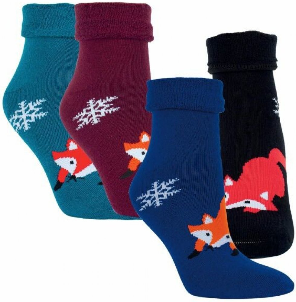 RS dámské barevné teplé froté ohrnovací ponožky liška 12799 modrá