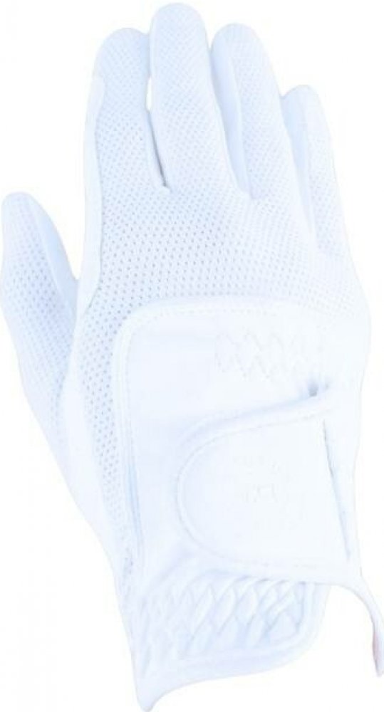 Jezdecké rukavice Ravenna jsou stylovým doplňkem pro volný čas i závody. Jsou vyrobené z dokonale padnoucí dvousměrně strečové tkaniny, která je prodyšná a odolná proti roztržení. Hřbet rukavice tvoří elastický materiál lycra, zatímco dlaň je z odolného syntetického materiálu, zesíleného v místech kontaktu s otěžemi. Rukavice zdobí jemné třpytivé detaily. Díky zapínání na suchý zip se dobře přizpůsobí tvaru ruky a snadno se oblékají i sundávají. Velikosti: 4 (4XS), 5 (3XS), 6 (2XS), 6.5 (XS), 7 (S), 7.5 (M), 8 (L), 8.5 (XL), 9 (2XL), 9.5 (3XL).