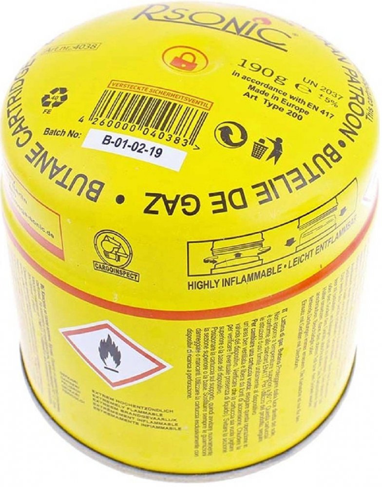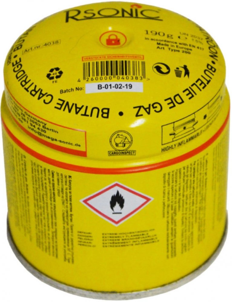Kartuše propichovací, jednorázová - plyn butan 190g.