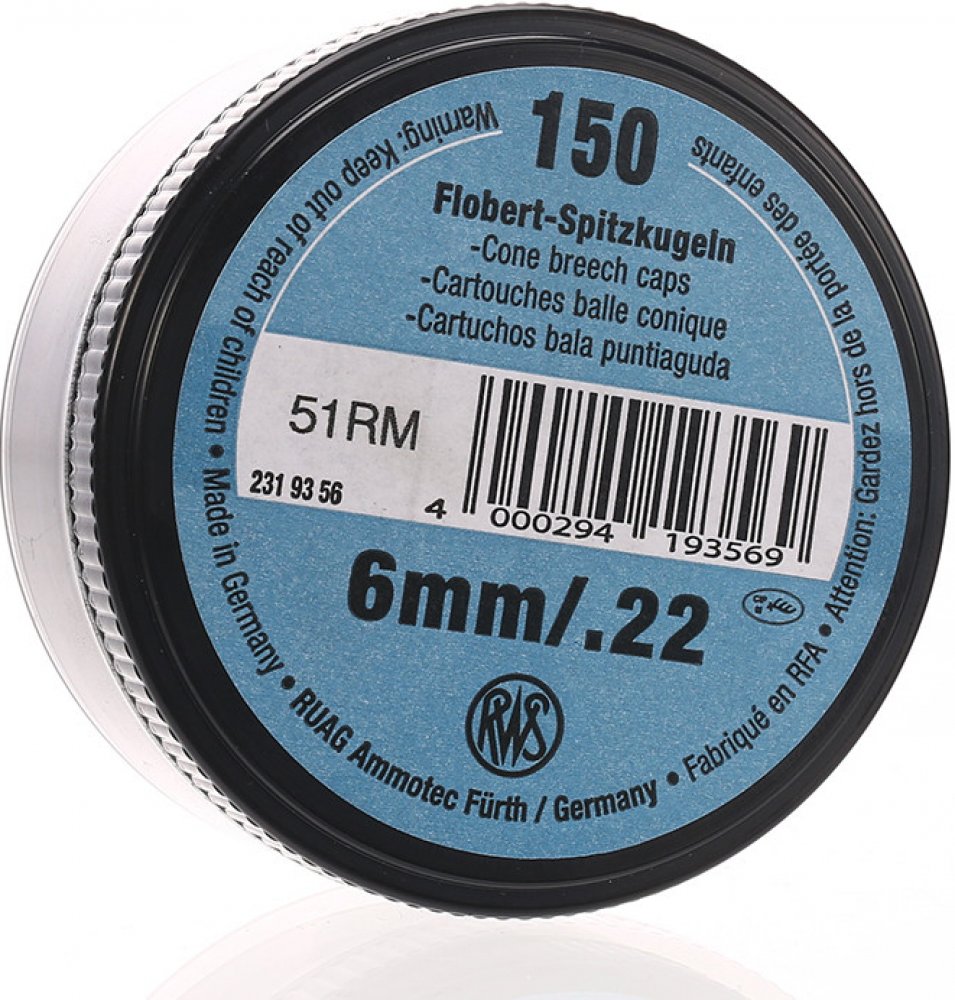 Flobertové náboje RWS 6mm špička 150ks. Střelivo pro flobertovou pušku, pistoli i revolver představují náboje s okrajovým zápalem. Ty se skládají z projektilu a nábojnice, kterou tvoří zápalná složka s výmetnou náplní. Náboje mají tuto zápalnou…