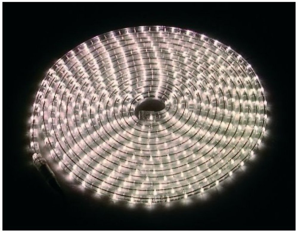 Světelná hadice - kabel, barva čirá, délka 5m. Vhodné jako vánoční světelná dekorace pro lemování obrysů, vytvářená nápisů apod. Extrémně ohebná konstrukce. Vytvořeno i pro venkovní použití. Dlouhá životnost žárovek. Celkový příkon 80W, celkem 180 žárovek, rozteč mezi žárovkami je 27mm, průměr hadice 13mm, napájení 220V.