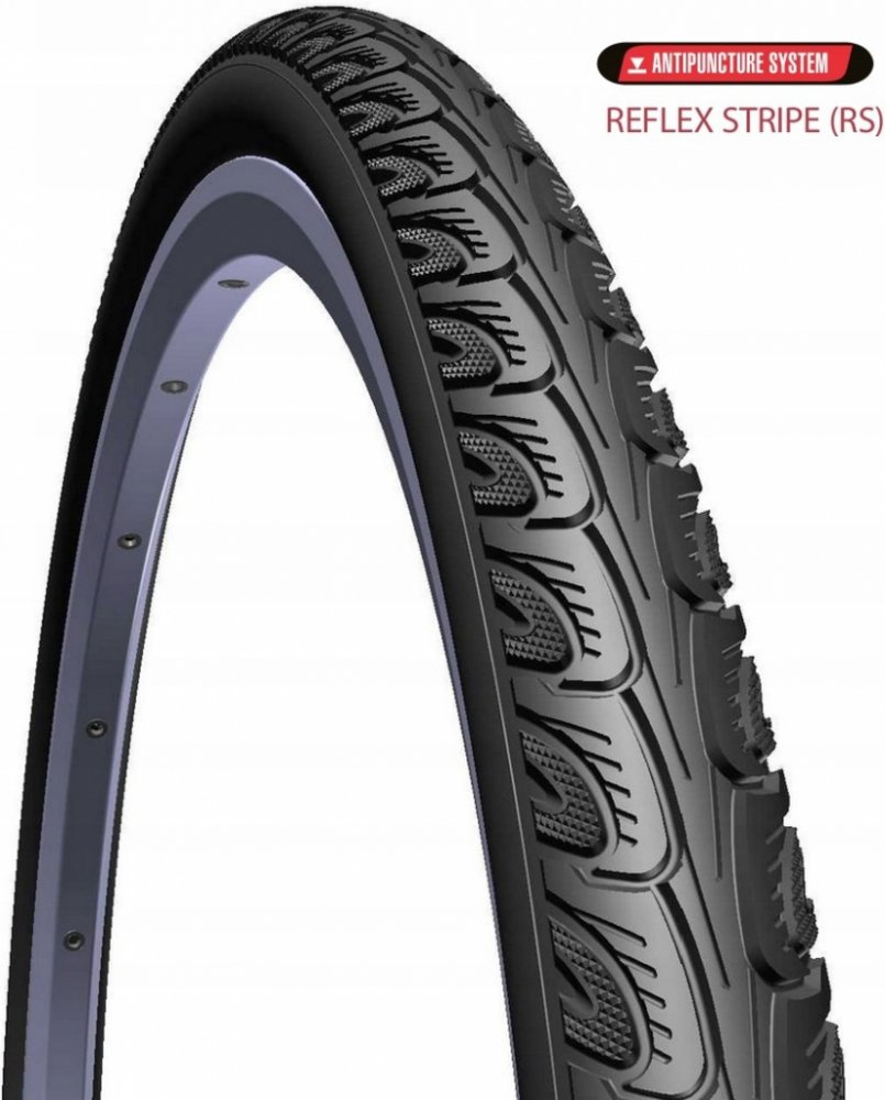 Pláště na kolo s technologií Mitas Reflex Stripe (RS) se starají o vaši bezpečnost. Provoz za snížené viditelnosti je v dnešním provozu nebezpečný a my v Mitasu se o cyklisty staráme po všech stránkách. Proto přicházíme s technologií plášťů na kolo Reflex Stripe, které mají na bočnici odrazové reflexní pásky. Výborné parametry reflexní pásky zaručují vysokou kvalitu odrazu světla za šera, tmy, mlhy a deště po celou dobu životnosti pláště. Pláště Rubena s reflexní páskou mohou používat celosvětově platný certifikát E4 88R-002058, kterým je zaručena kvalita výroby plášťů podle přesně stanovených parametrů. Reflexní páska přesně umístěná na bočnici velopláště je výrazný bezpečnostní a estetický prvek, který zvyšuje užitnou hodnotu výrobku a bezpečnost každého jezdce.