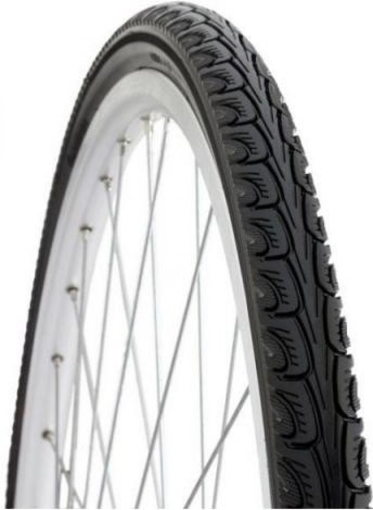 Plášť RUBENA HOOK V69 od českého výrobce RUBENA (Mitas) - určený především na starší modely pánských kol značky FAVORIT, ESKA - kategorie CLASSIC22 - konstrukce typu GUMWALL - bočnice plášťů je tvořená pogumovaným kordem krytým pryžovou vrstvou + vinuté ocelové lanko v patce (hustota vláken 22TPI) BC - standartní protektorová sazová směs určená pro běžné použití v univerzálních podmínkách V této kategorii se jedná o pláště pro běžný provoz, rekreační sport a turistiku( spolehlivost, dobré jízdní vlastnosti, odolnost proti opotřebení) HOOK - univerzální dezén určen i pro jízdu na nekvalitním a nezpevněném povrchu. Téměř hladká střední část dezénu zajišťuje menší valivý odpor při jízdě po silnici. Rozměr : 32-630 (27 x 1 1/4) Hmotnost pláště : 600 g Huštění : 650 kPa Nosnost : 91 Kg